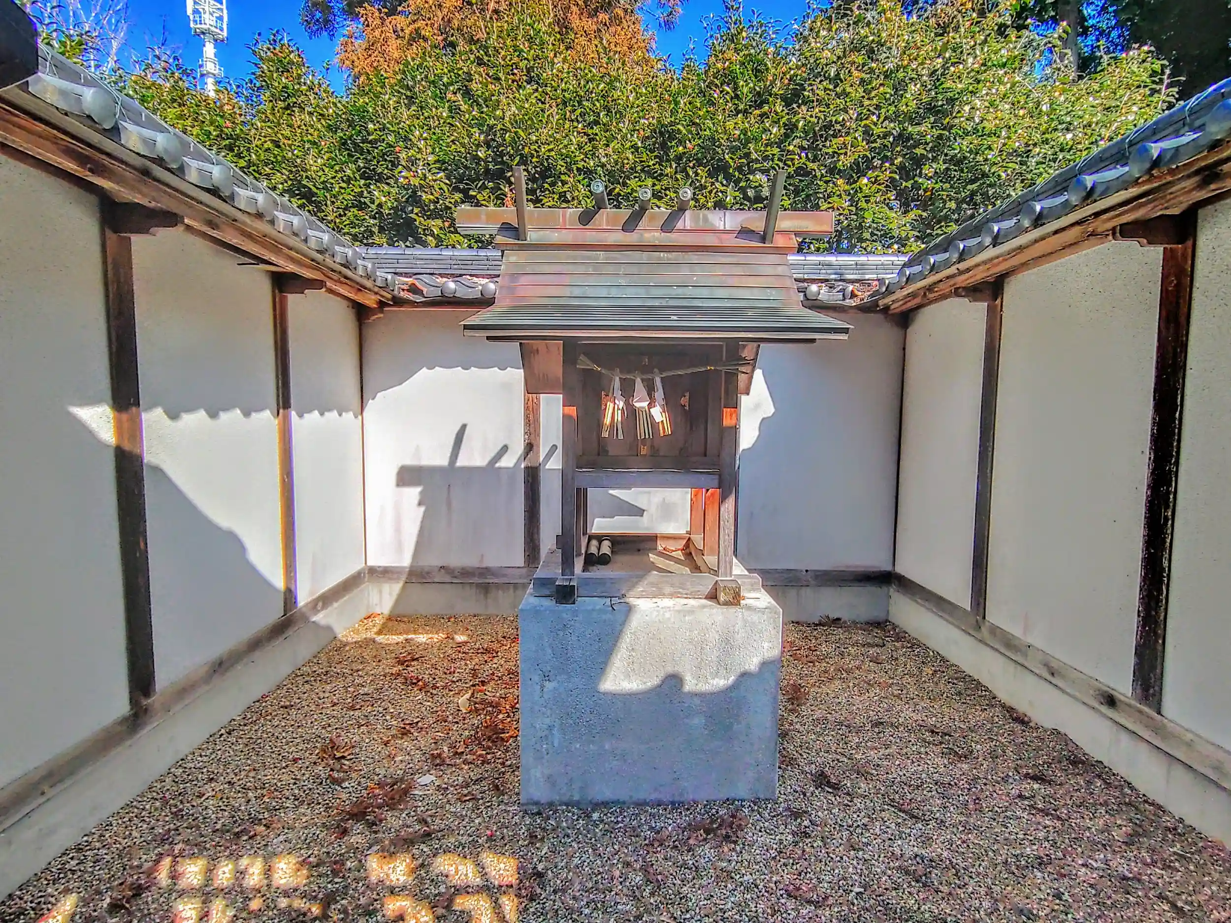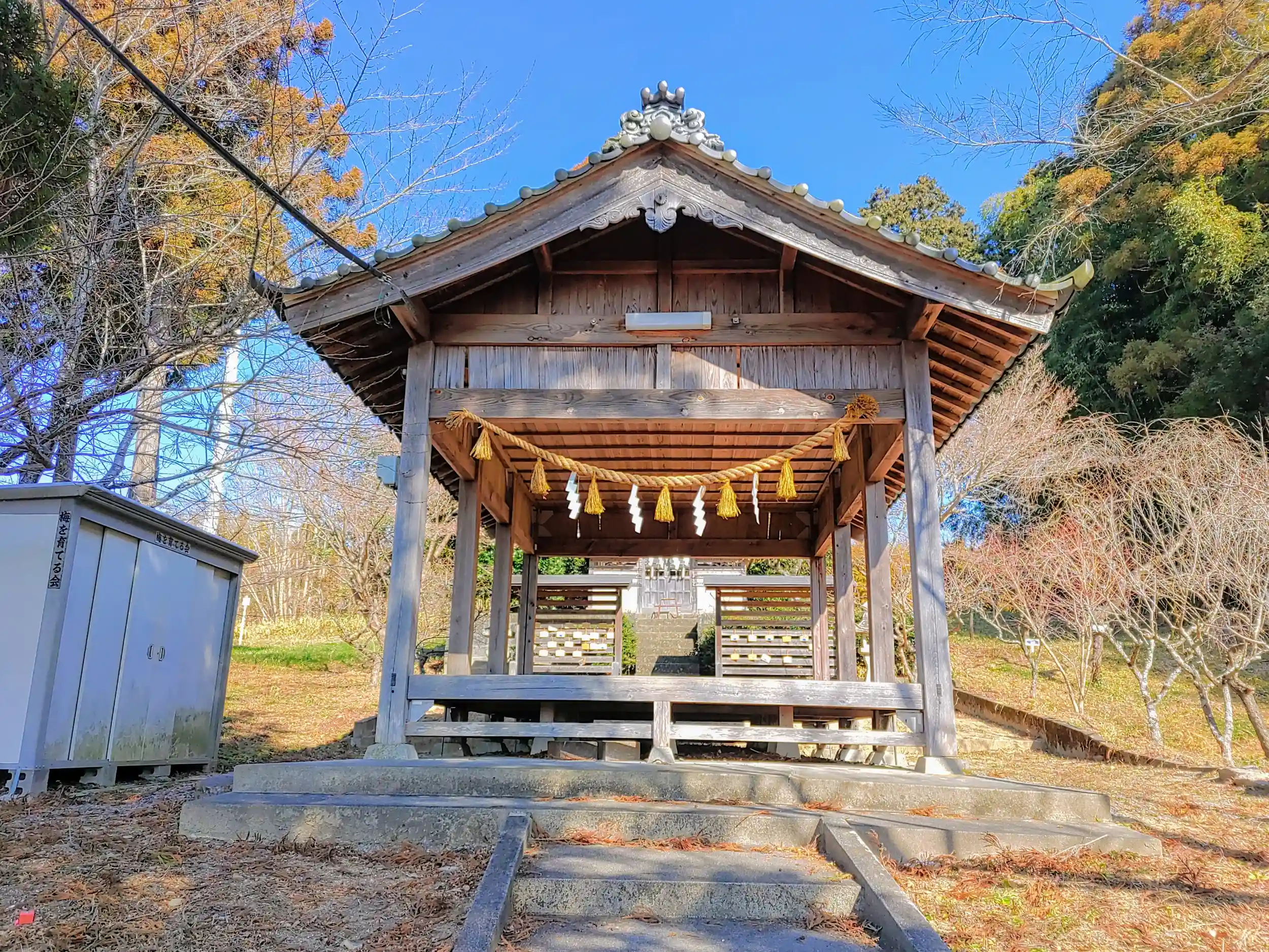 貝津町にある貝津神社の飛地境内社になっています。マップ表記は「北野天満宮」になっていますが愛知縣神社名鑑の貝津神社の欄には「北野社」になっていました。