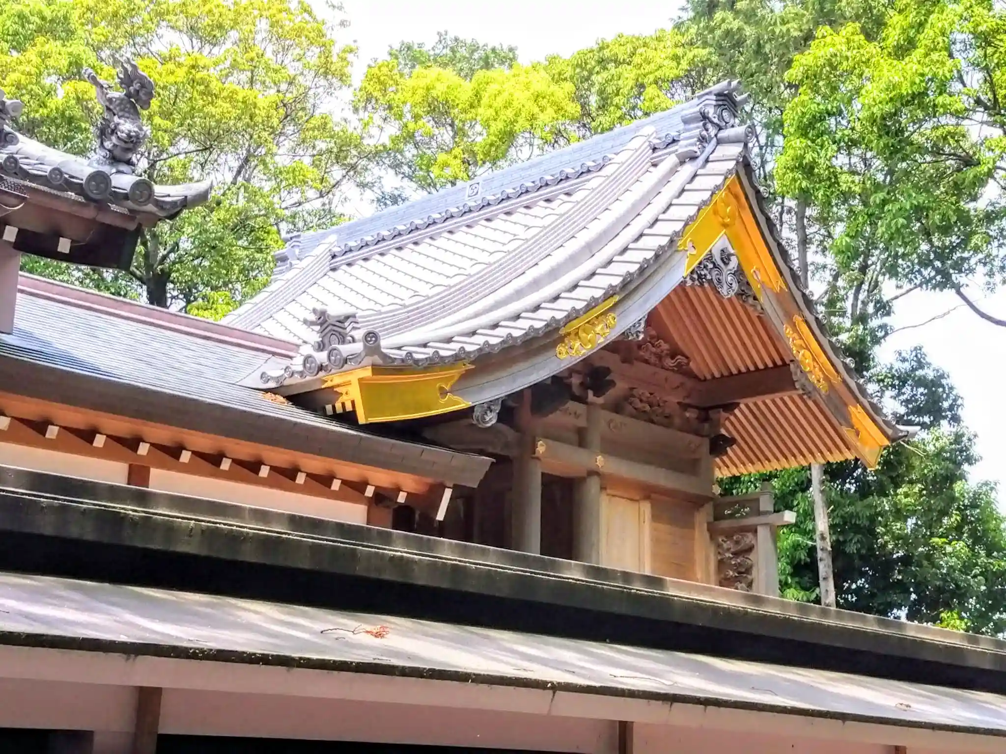 拝殿の屋根の上に何やら?