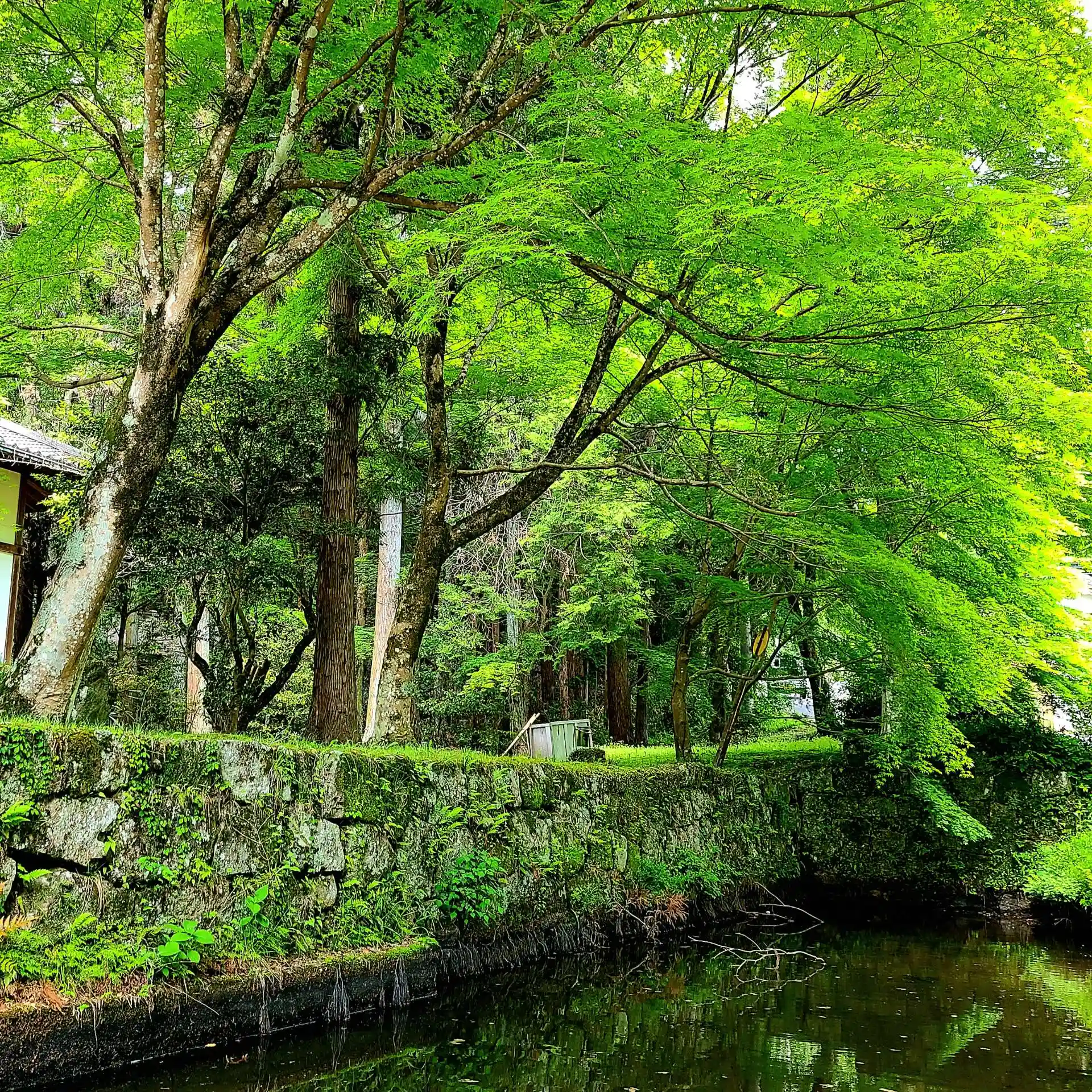 お堀を覆う新緑が絶景です
