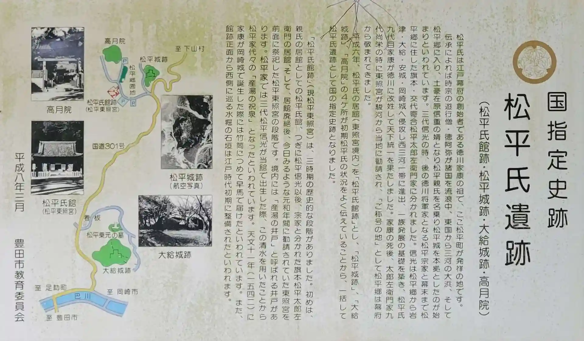 徳川家の始祖、松平氏発祥の地「松平郷」にあり、徳川家康公が誕生した際、この水を竹筒に入れ早馬で届けたと言われる「産湯の井戸」もあります。