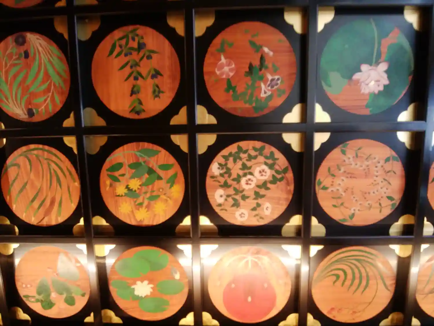 社殿内の漆天井画