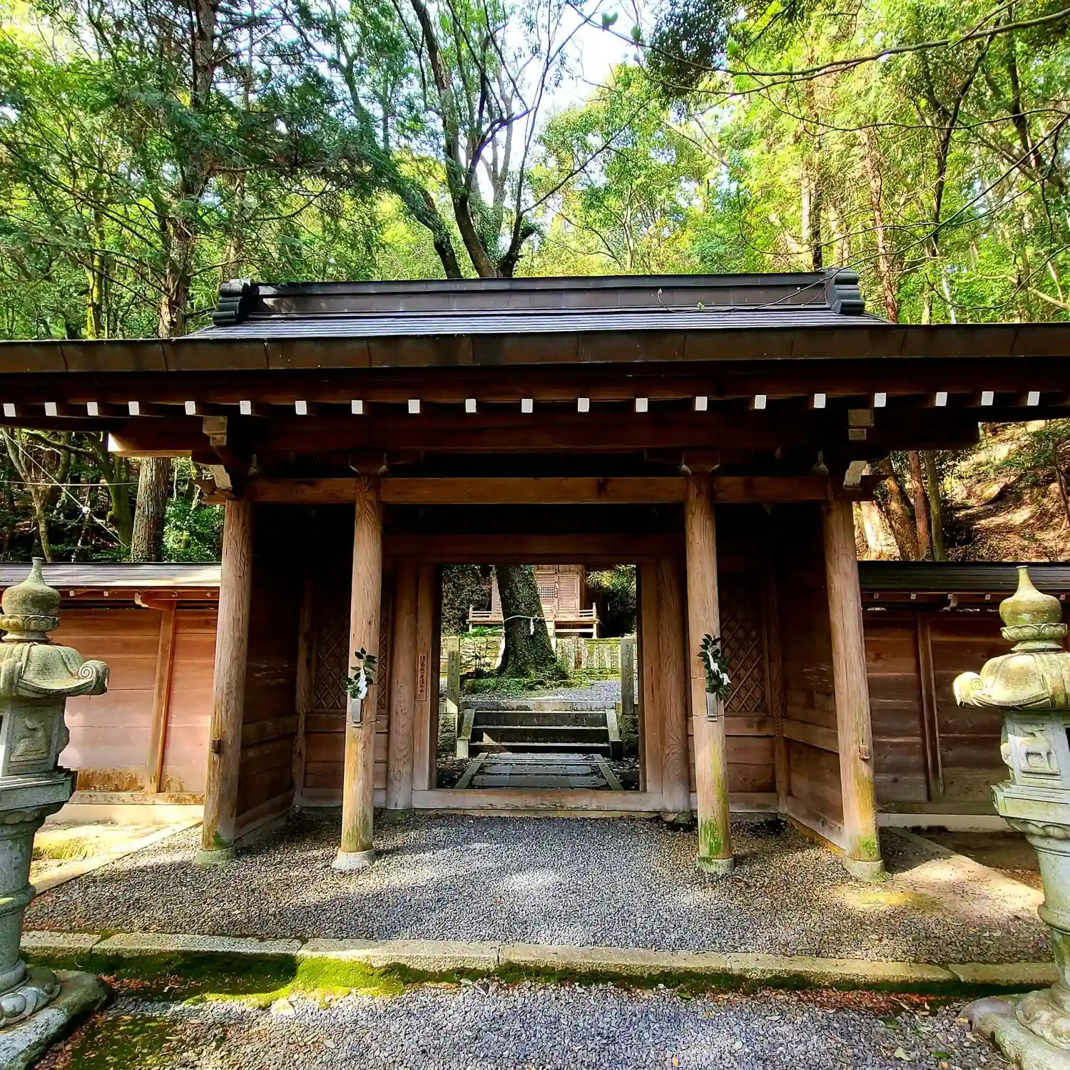 漆絵の天井画が素晴らしい社殿、境内の奥に…