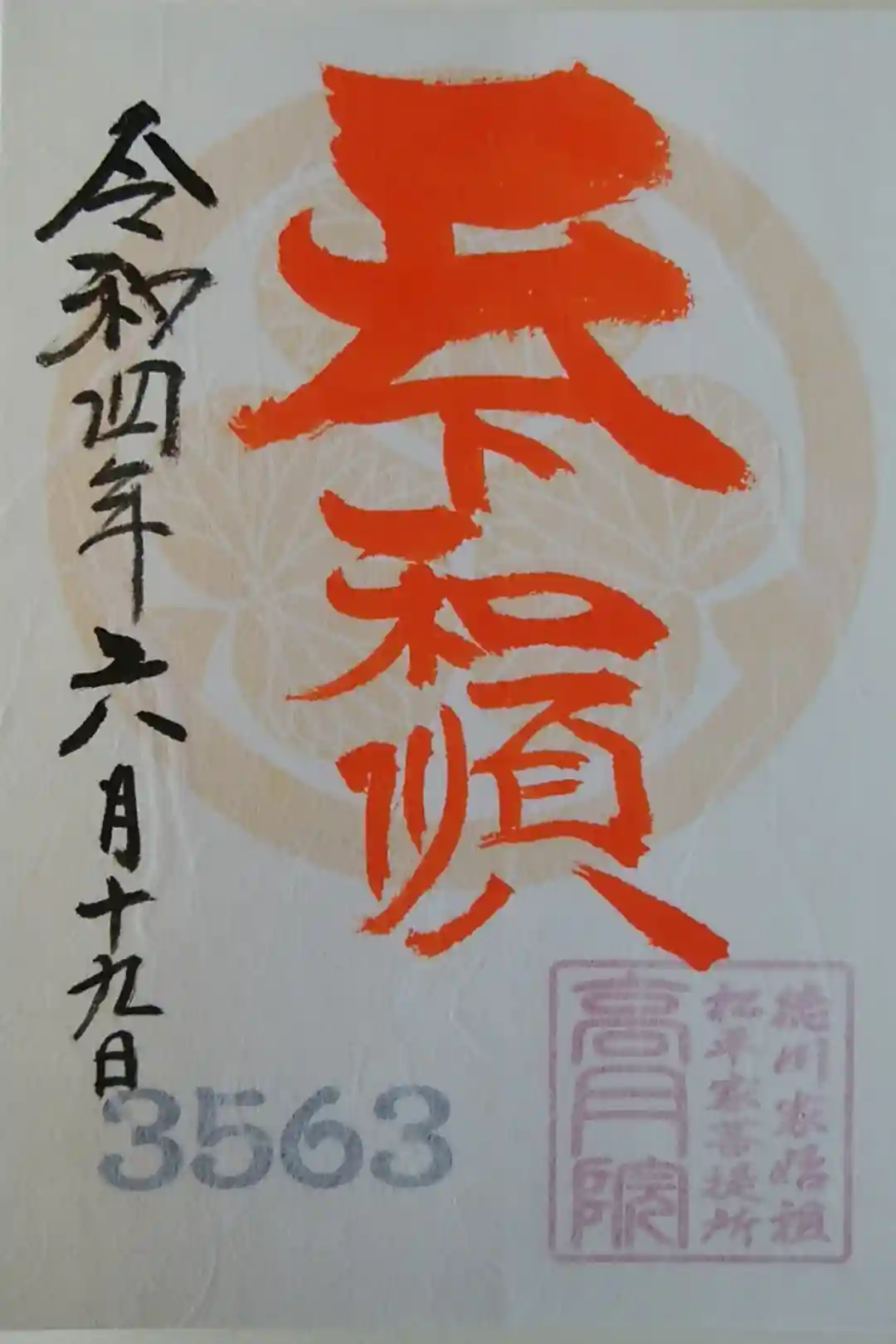 赤い葵紋の特別御朱印です。