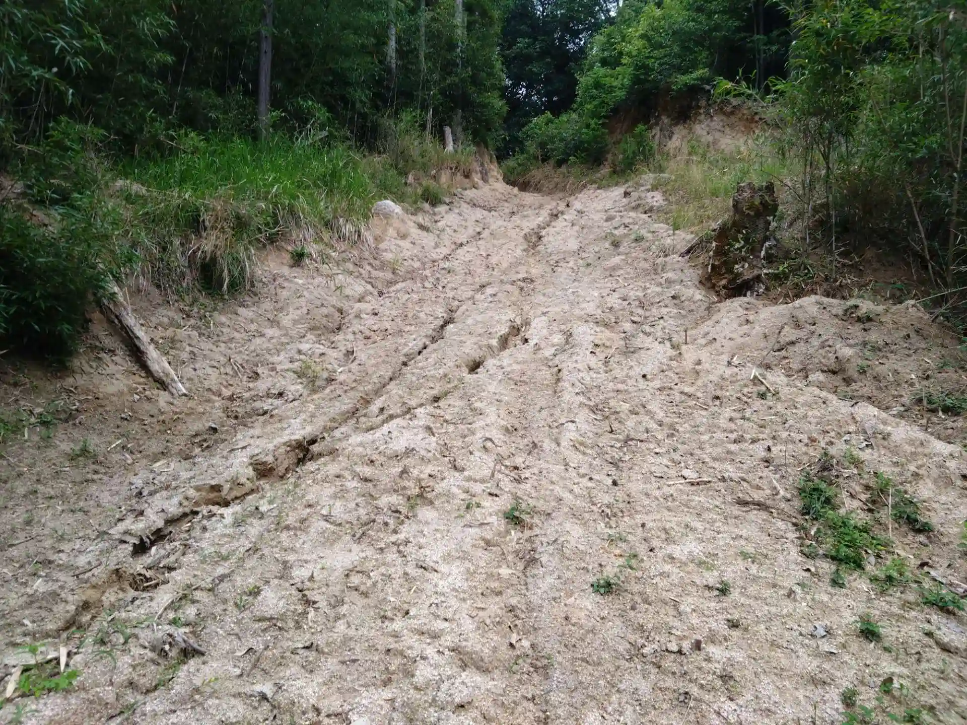 山の坂道を上がって行くと、雨で流れかけている道を通り、やっとの思いで着きました。