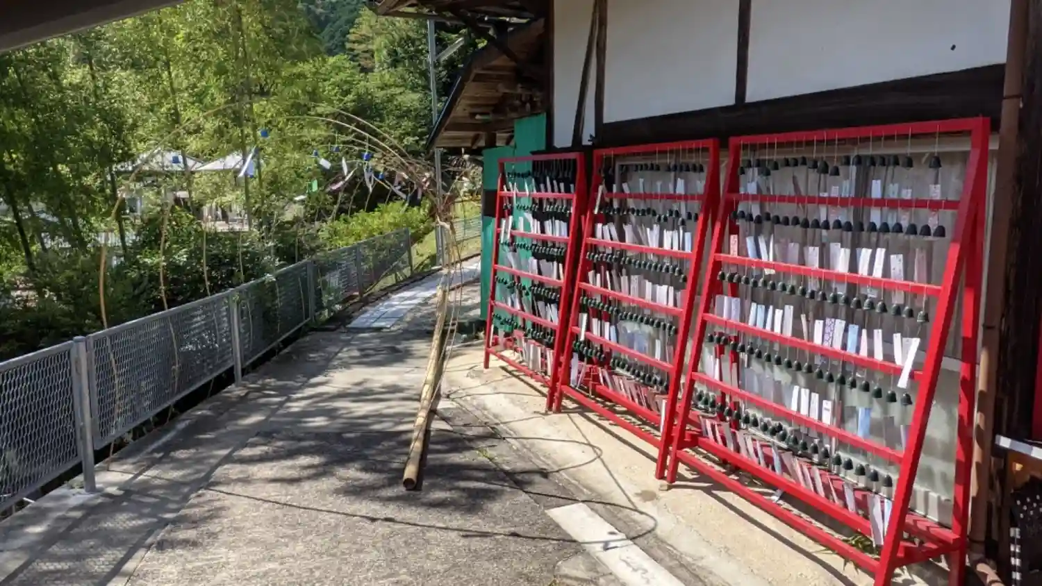山を抜けていくとある素敵なお寺です。絵馬の代わりが風鈴になります。ちょうど風が吹いていて風鈴の音色…