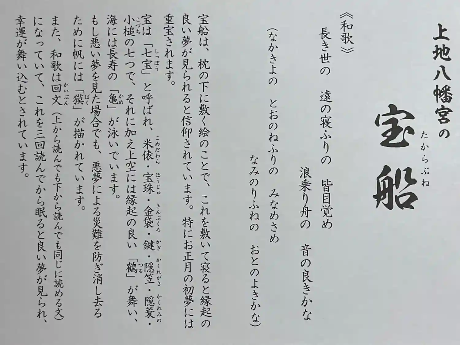 本来に宝船はお正月の頃に枕の下にして就寝すると良いとの事ですが結構いい用紙を使っているので、額縁に入れて飾りたいですね。