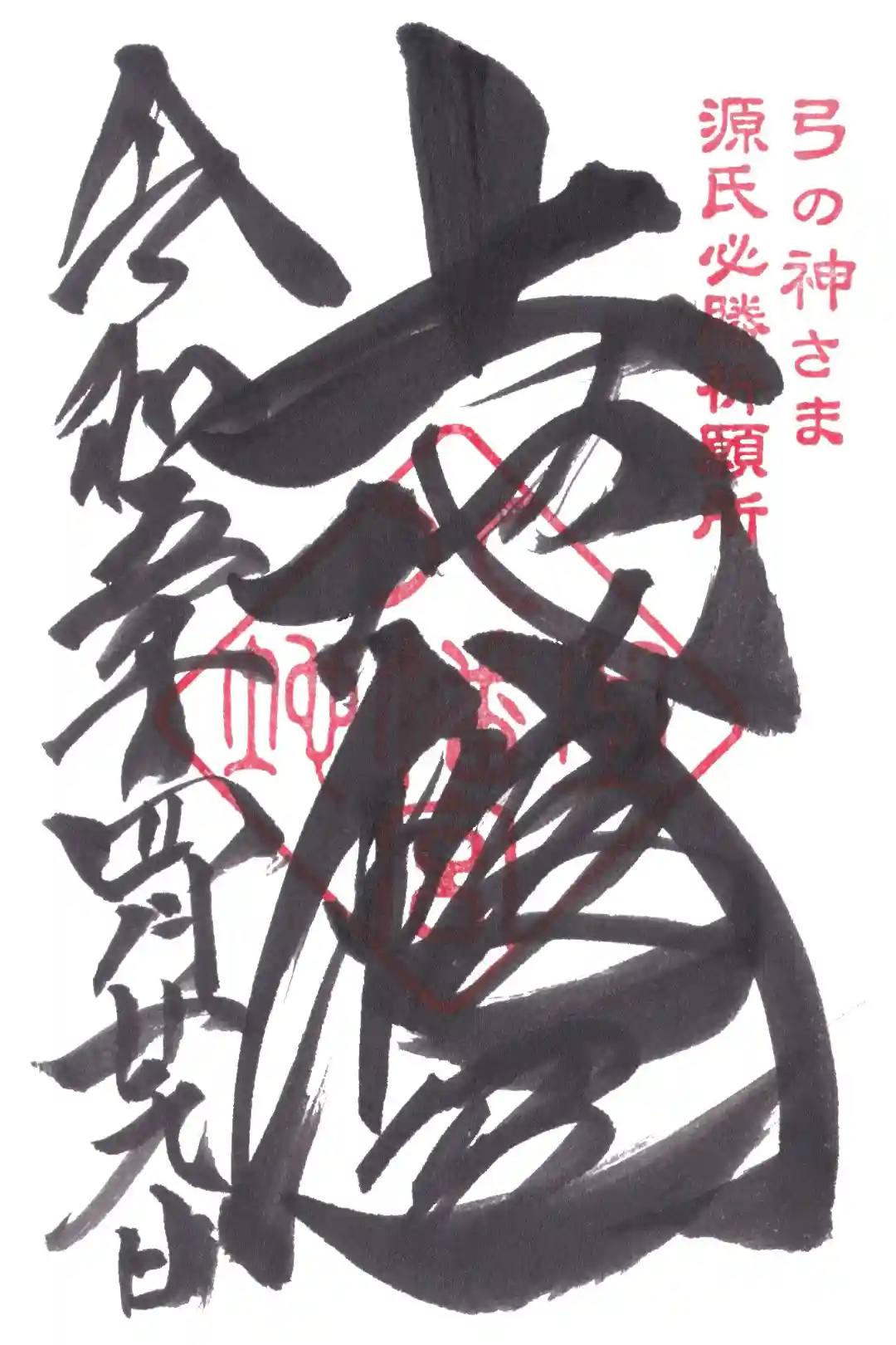 御祭神は、弓の神様で勝運の神様である應神天皇(おうじんてんのう)と、八剱命(やつるぎのみこと)、仁徳天皇(にんとくてんのう)、天照大御神(あまてらすおおかみ)です。