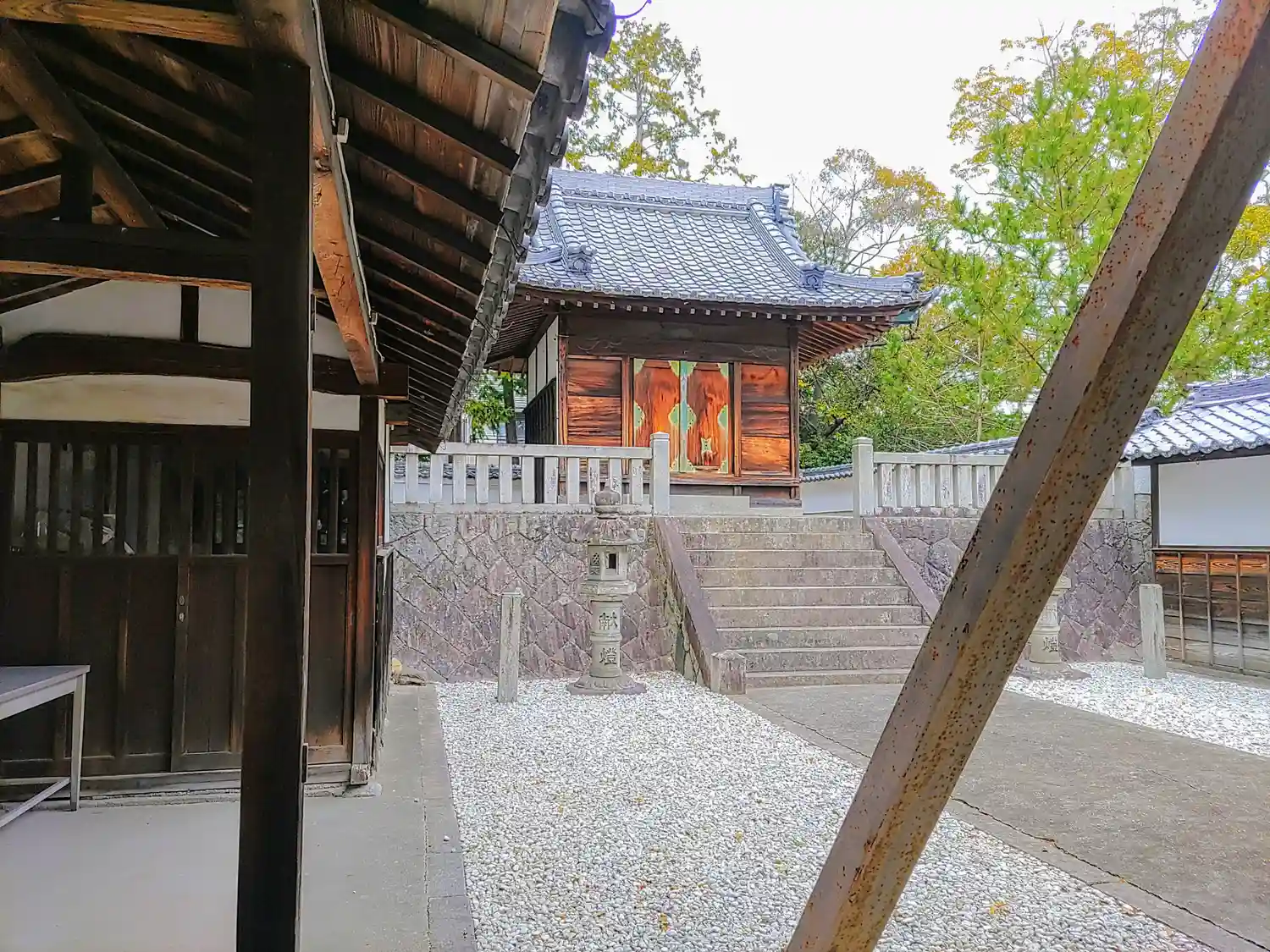 神域を囲む塀のすき間から中を覗くと立派な本殿がありました。