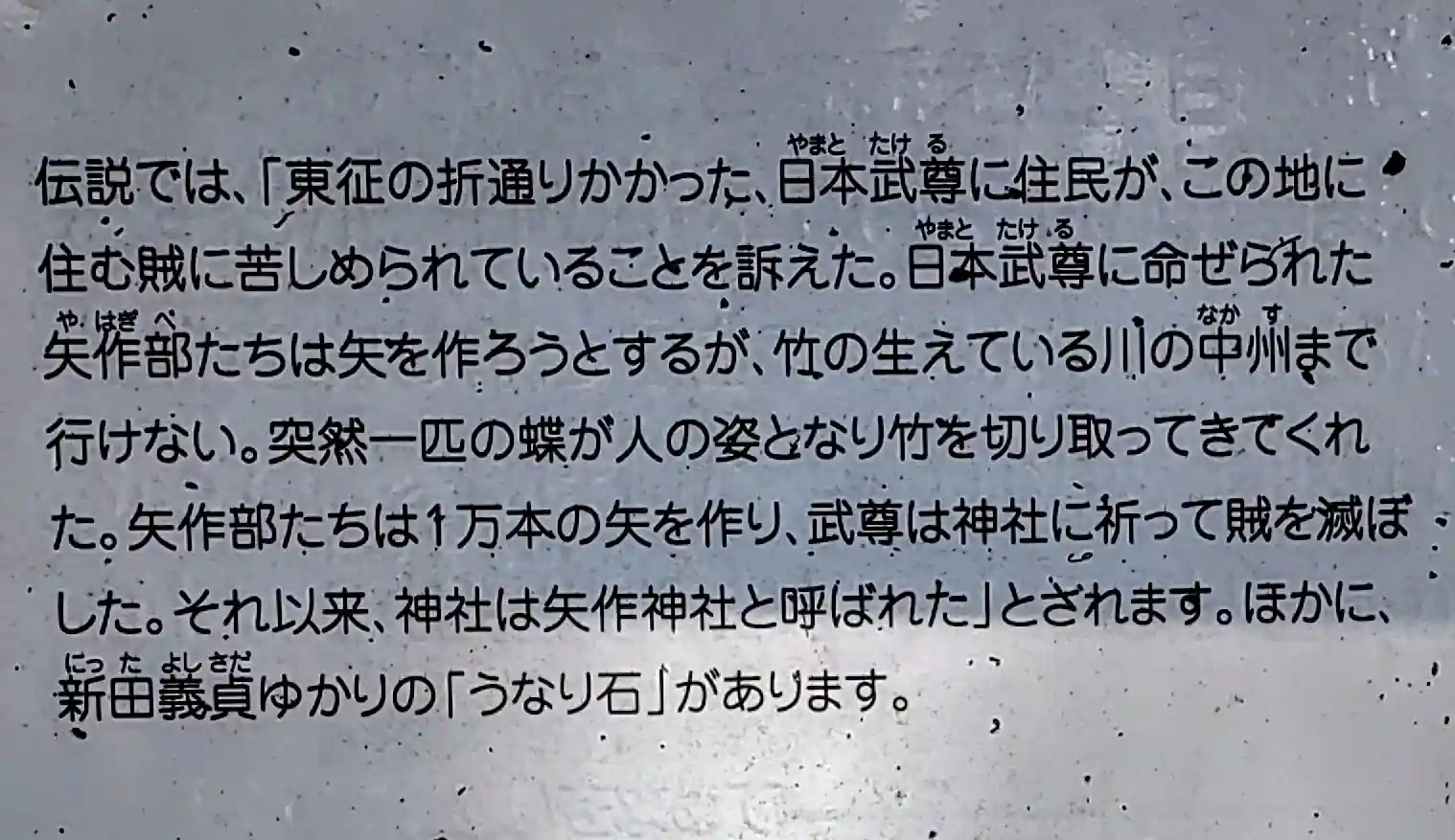 新田義貞がこの矢作神社に戦勝祈願をしたところ石がうなりだしたそうな。