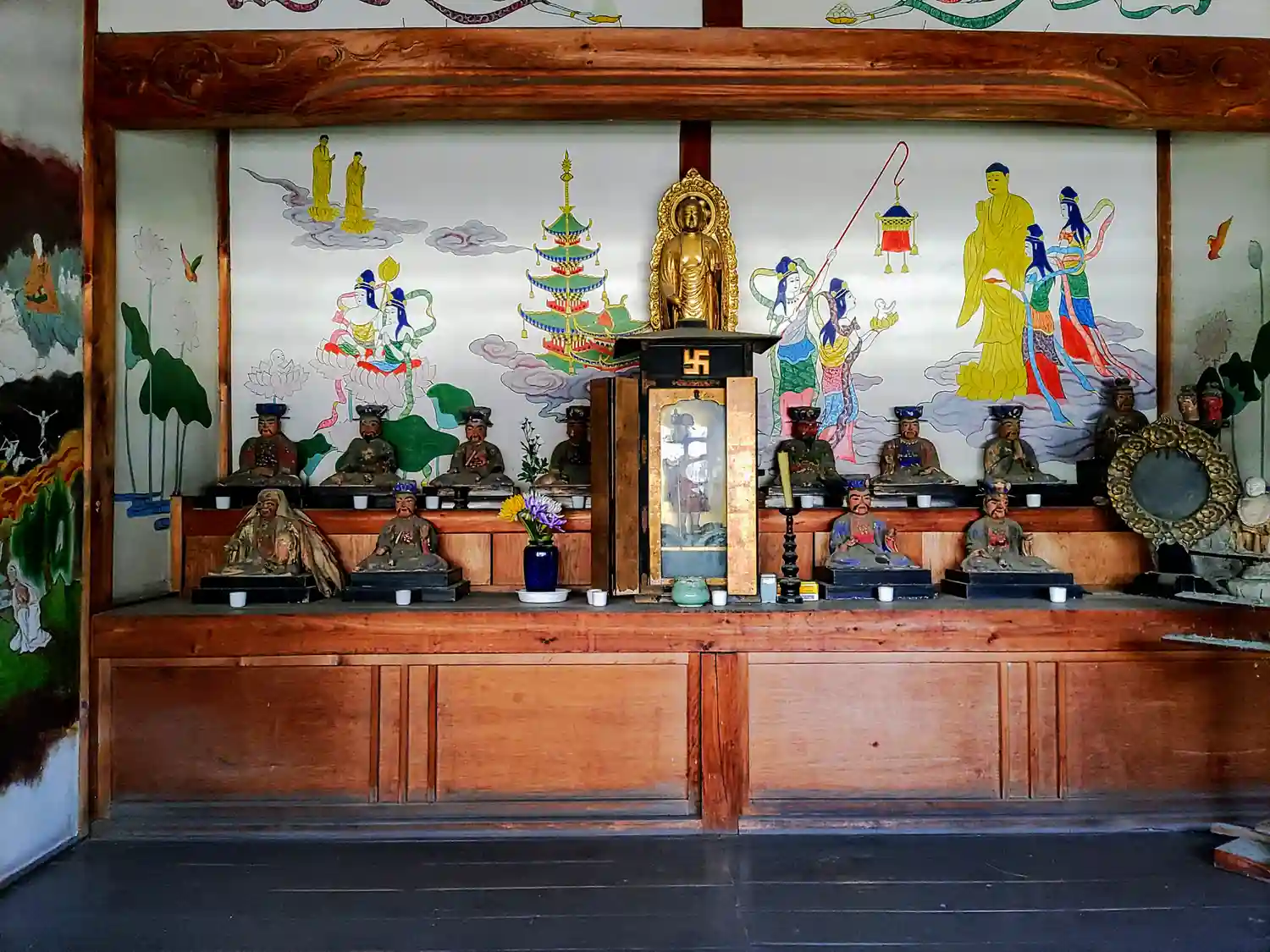 十王堂は浄瑠璃姫伝説に関わるところです。十王の像が安置されて、壁には地獄・極楽が描かれています。
