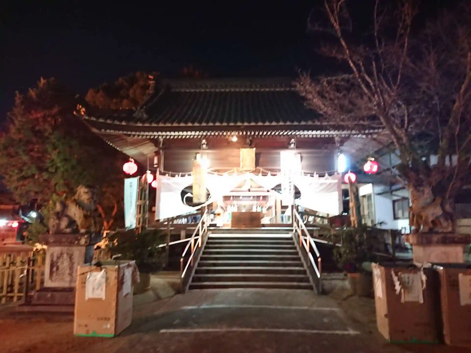 いつもは静かな神社ですが、年明けの深夜は多くの人で賑わっています。夜明かりが灯るのはこの時くらいでしょう。