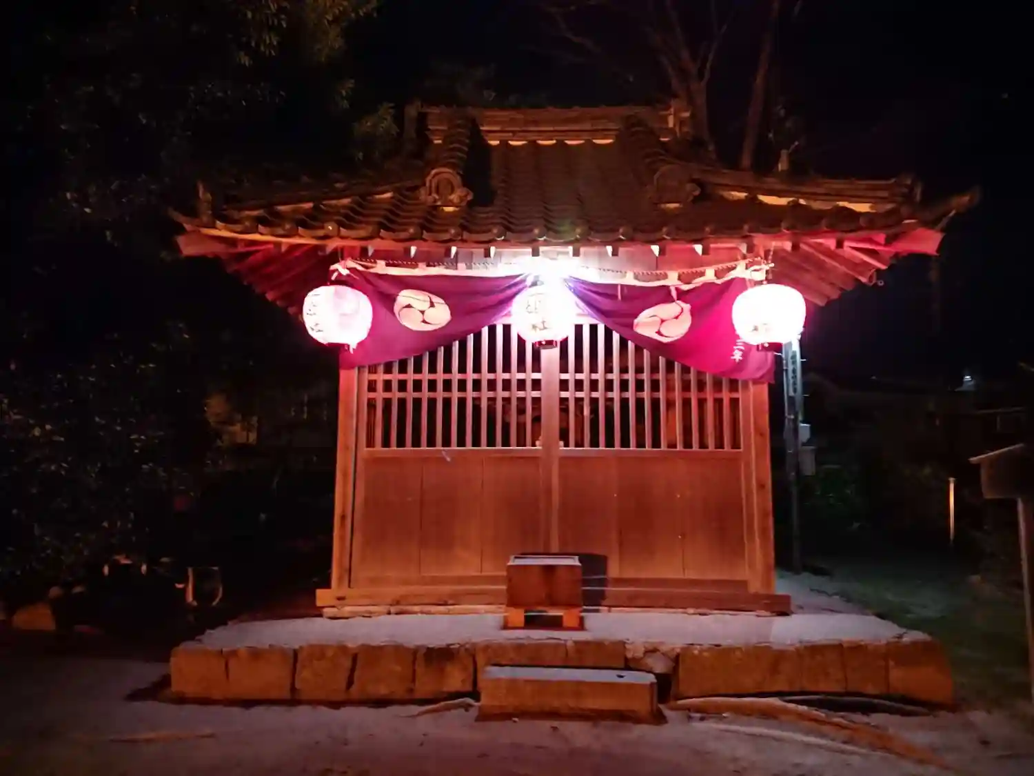 いつもは静かな神社ですが、年明けの深夜は多くの人で賑わっています。夜明かりが灯るのはこの時くらいで…