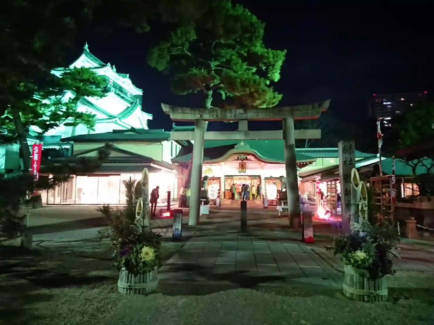 鳥居、社殿、岡崎城