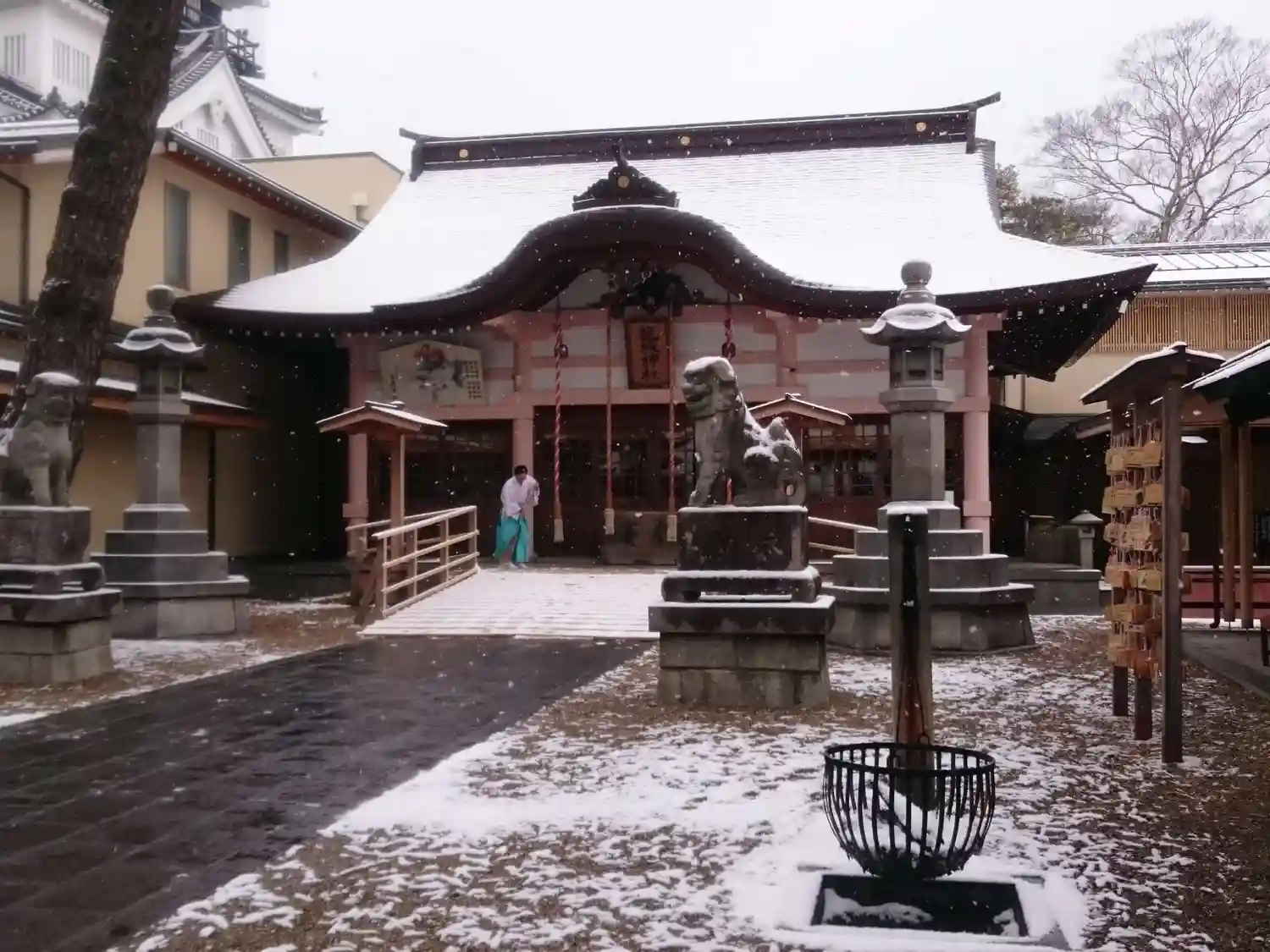 新年を迎える1時間前。巫女さんも待機中。この後は初詣で混雑します。