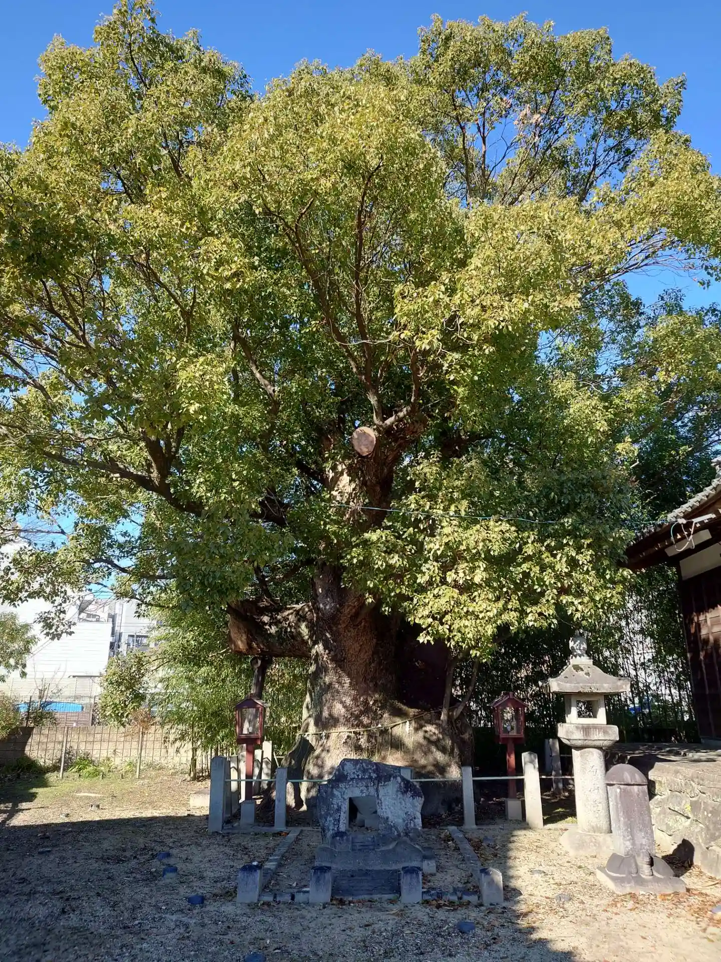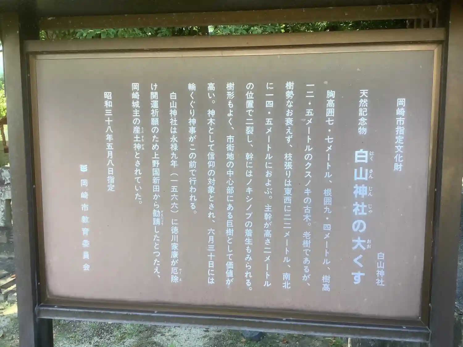 岡崎公園のすぐ近くにあります。樹齢600年以上の大楠…
