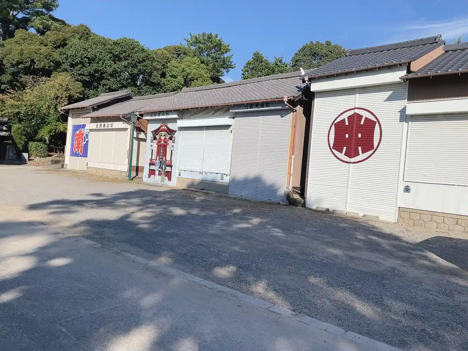 境内の両脇は山車の格納庫がズラっと並んでいます。