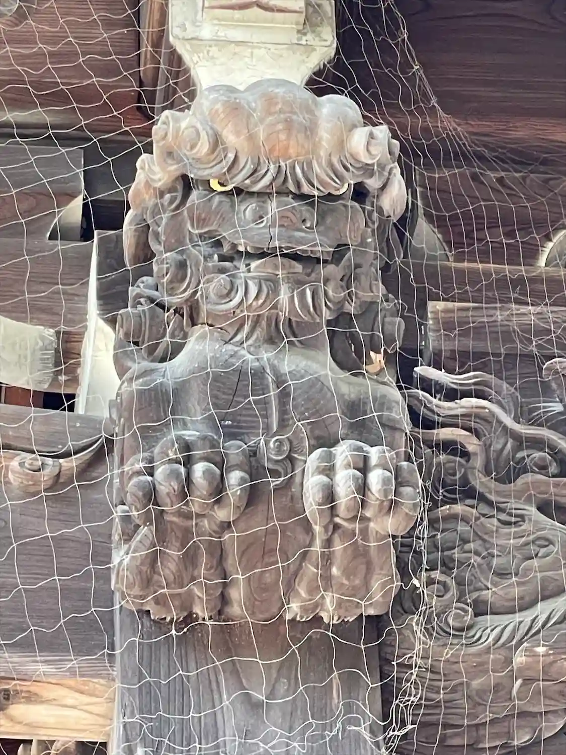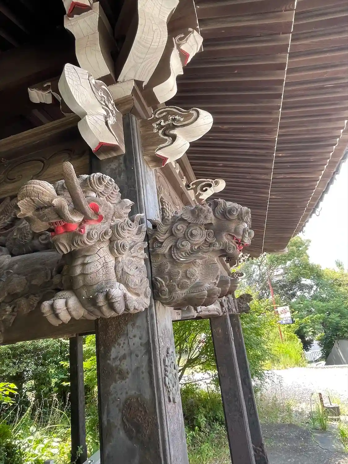 柱の獅子が大きく迫力がある。