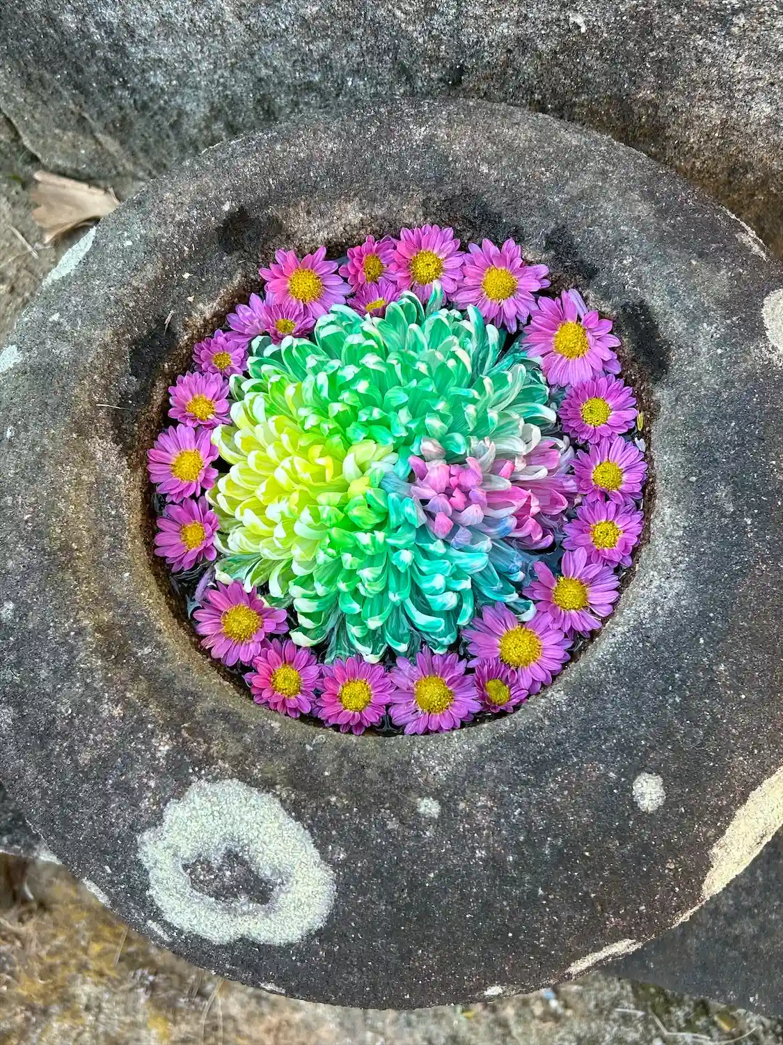 菊アートによる華やかな手水鉢💐💐