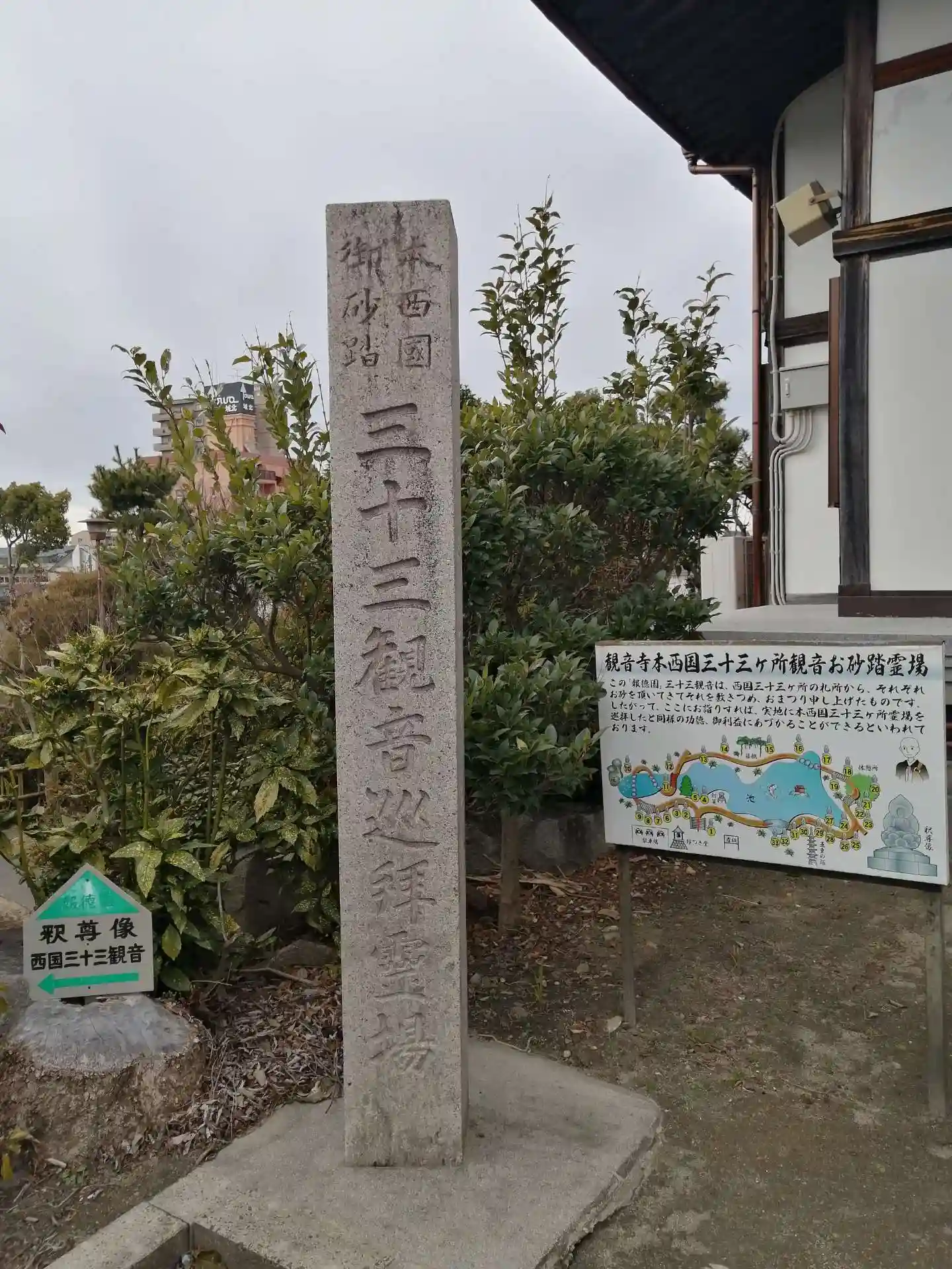 また、本堂左側には庭園があって、その池の周りに西国三十三所お砂踏み霊場があります。