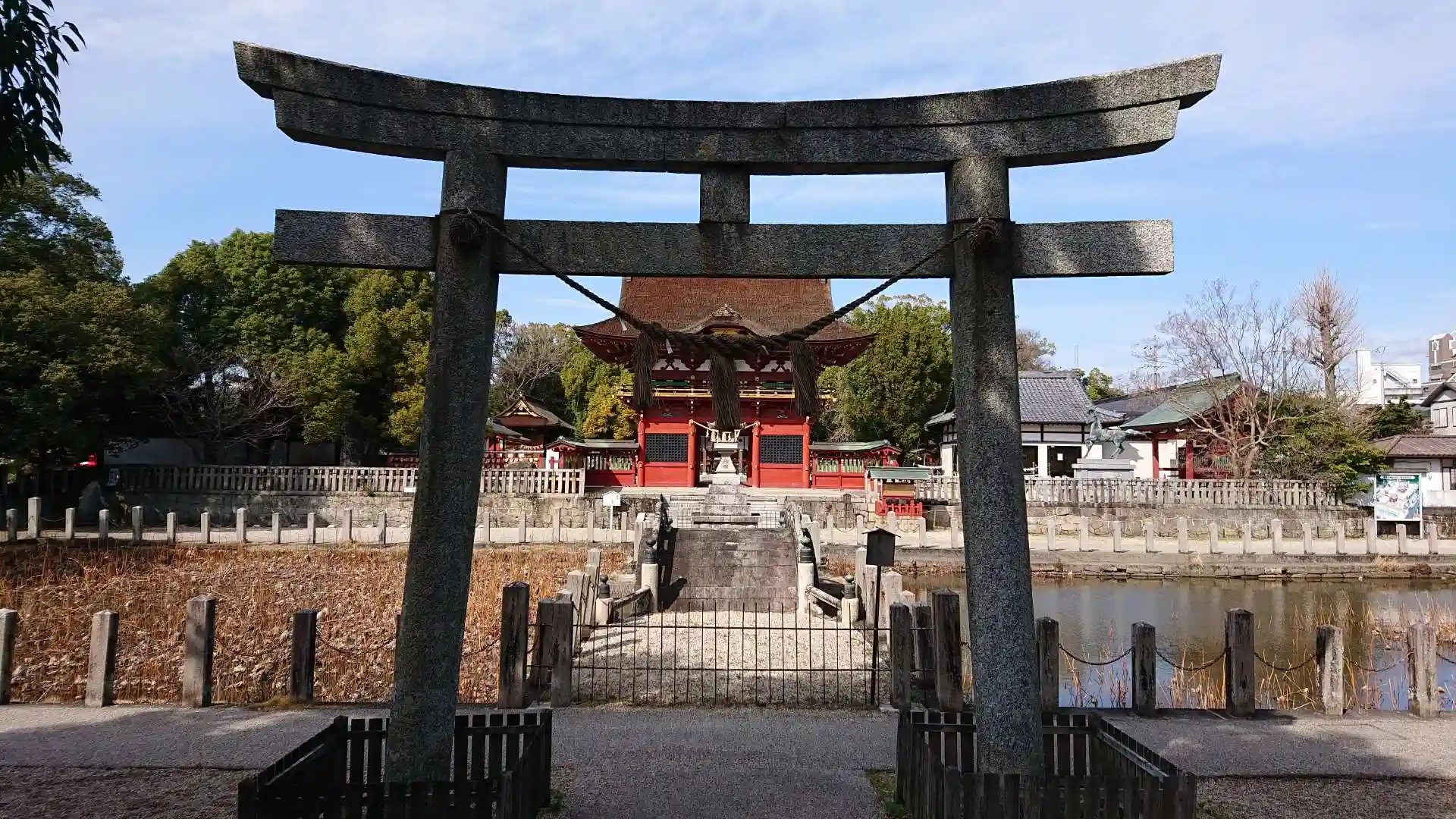 蓮池越しの太鼓橋と三の鳥居