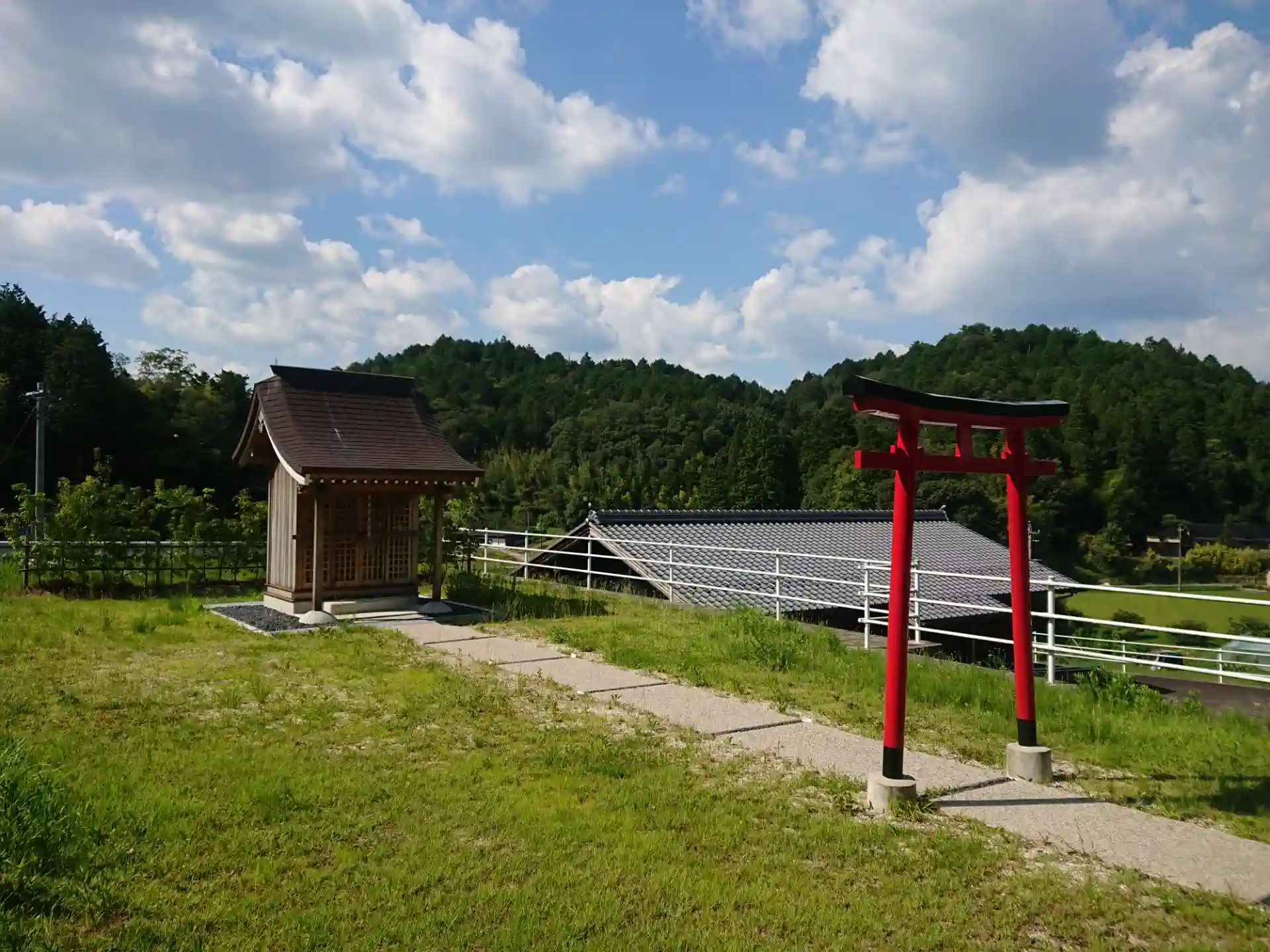 道路沿いに赤い鳥居があります。まだ新しい祠があります。中には天照皇大神宮の札がありました。