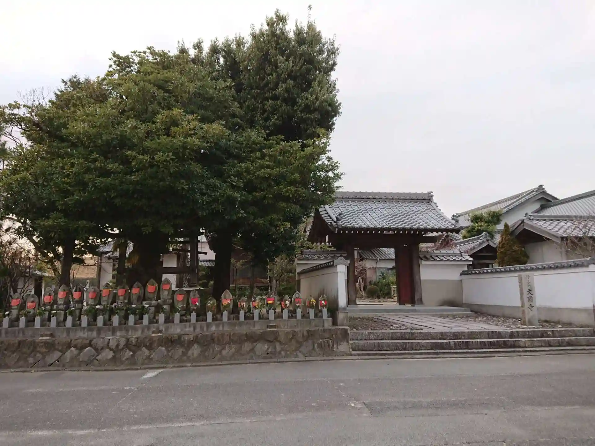 山門横に地蔵が並んでいます。静かな寺です。