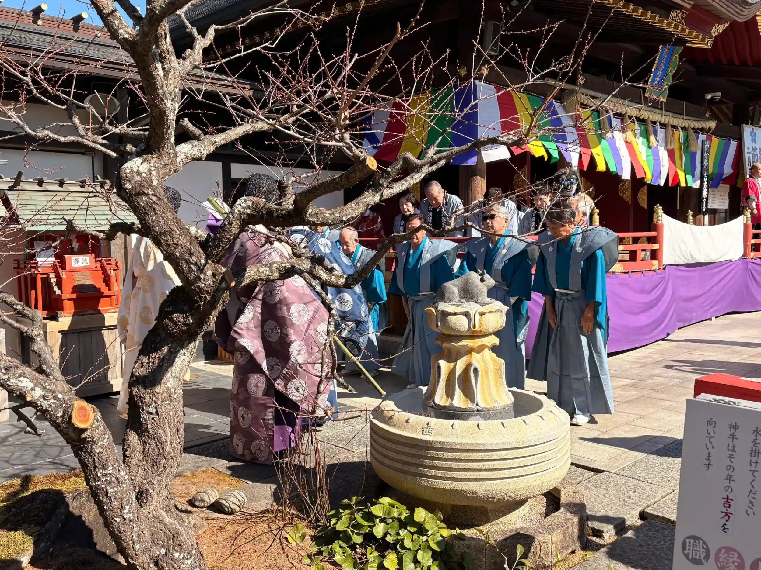豆まきが終わると子供が鬼と記念撮影をしていました。5月5日は赤ちゃんの泣き相撲もあります。