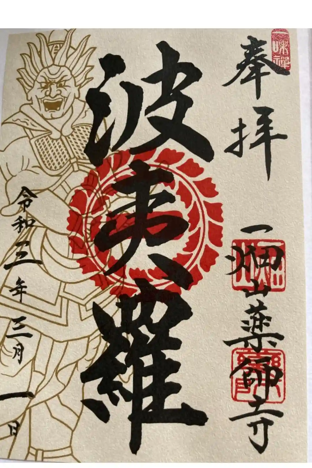4月限定の御朱印「因達羅」です。