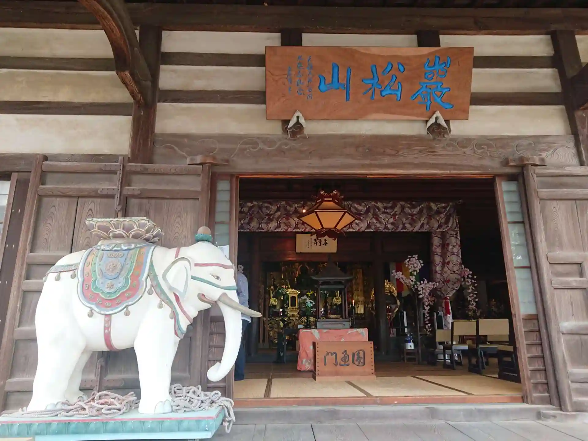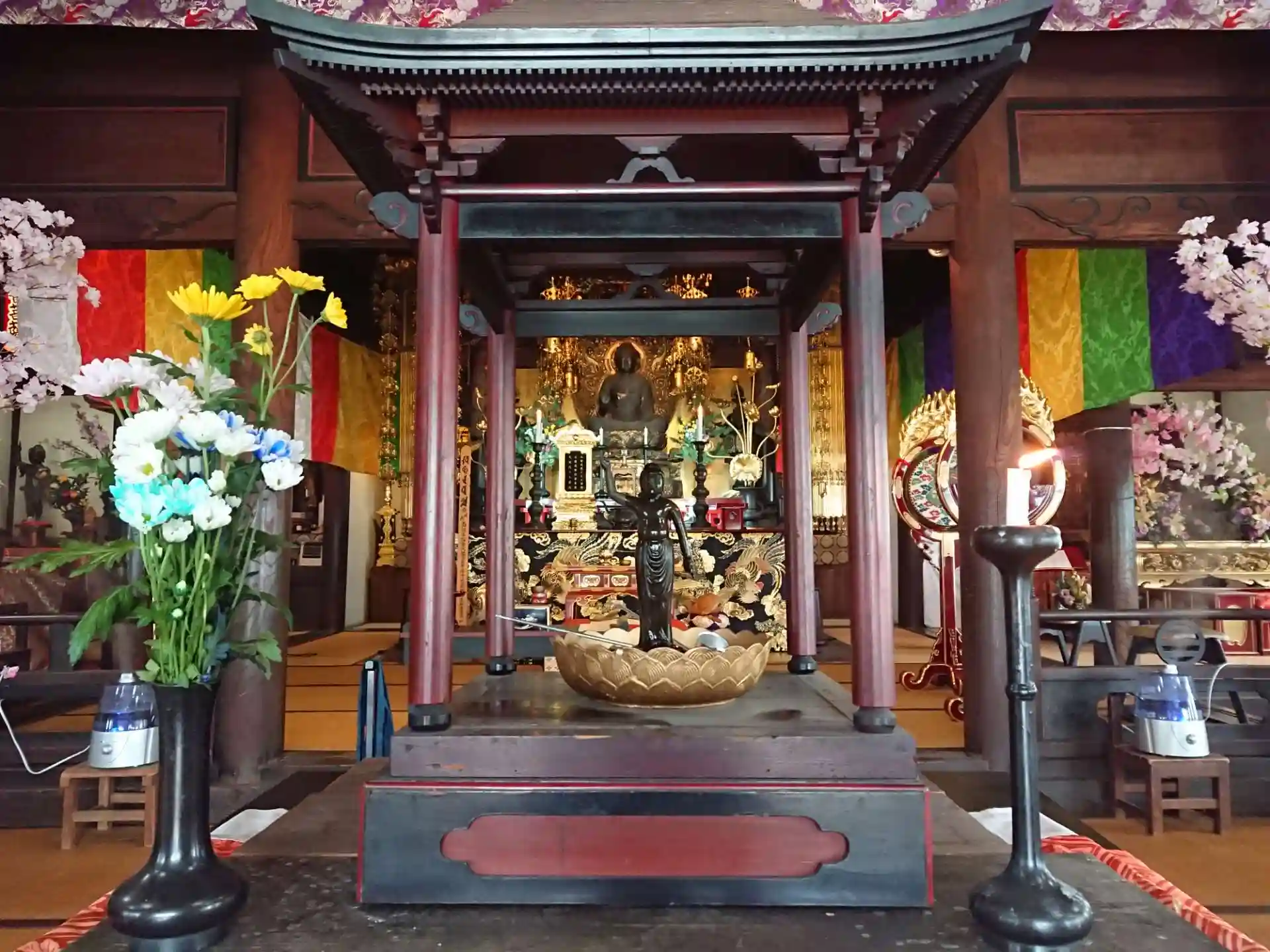 むらさき麦まつりで立ち寄りました。本堂が解放されていました。花まつりを行っており、甘茶をいただきました。