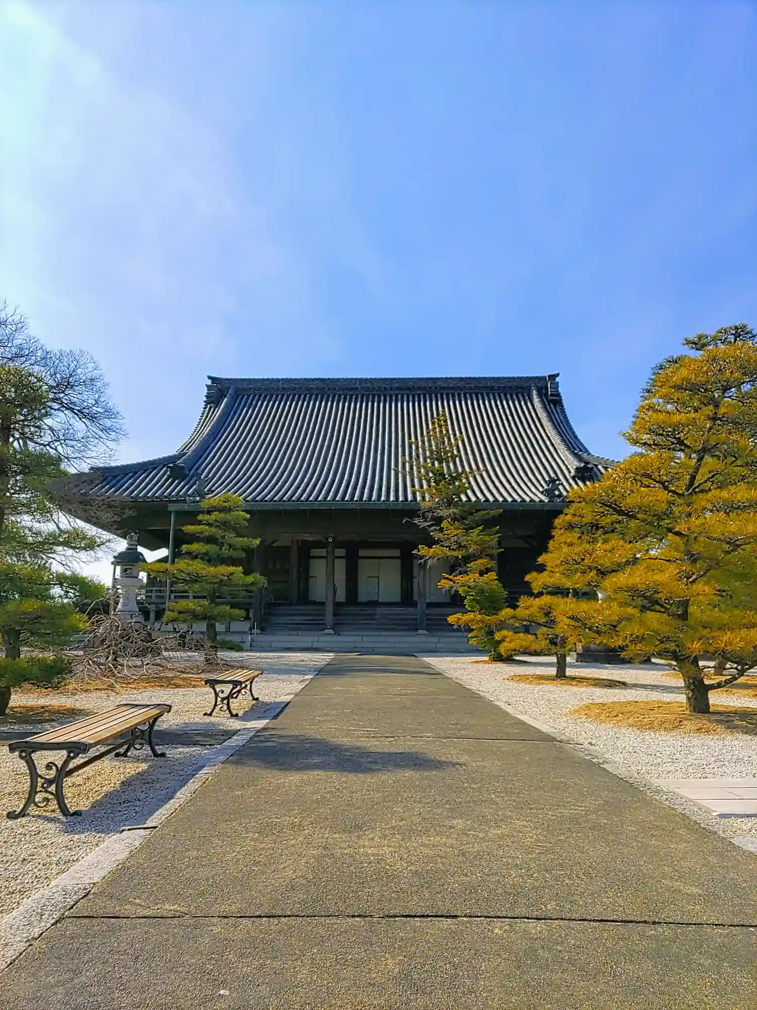 本堂へ真っ直ぐ伸びる参道 綺麗に手入れされています。