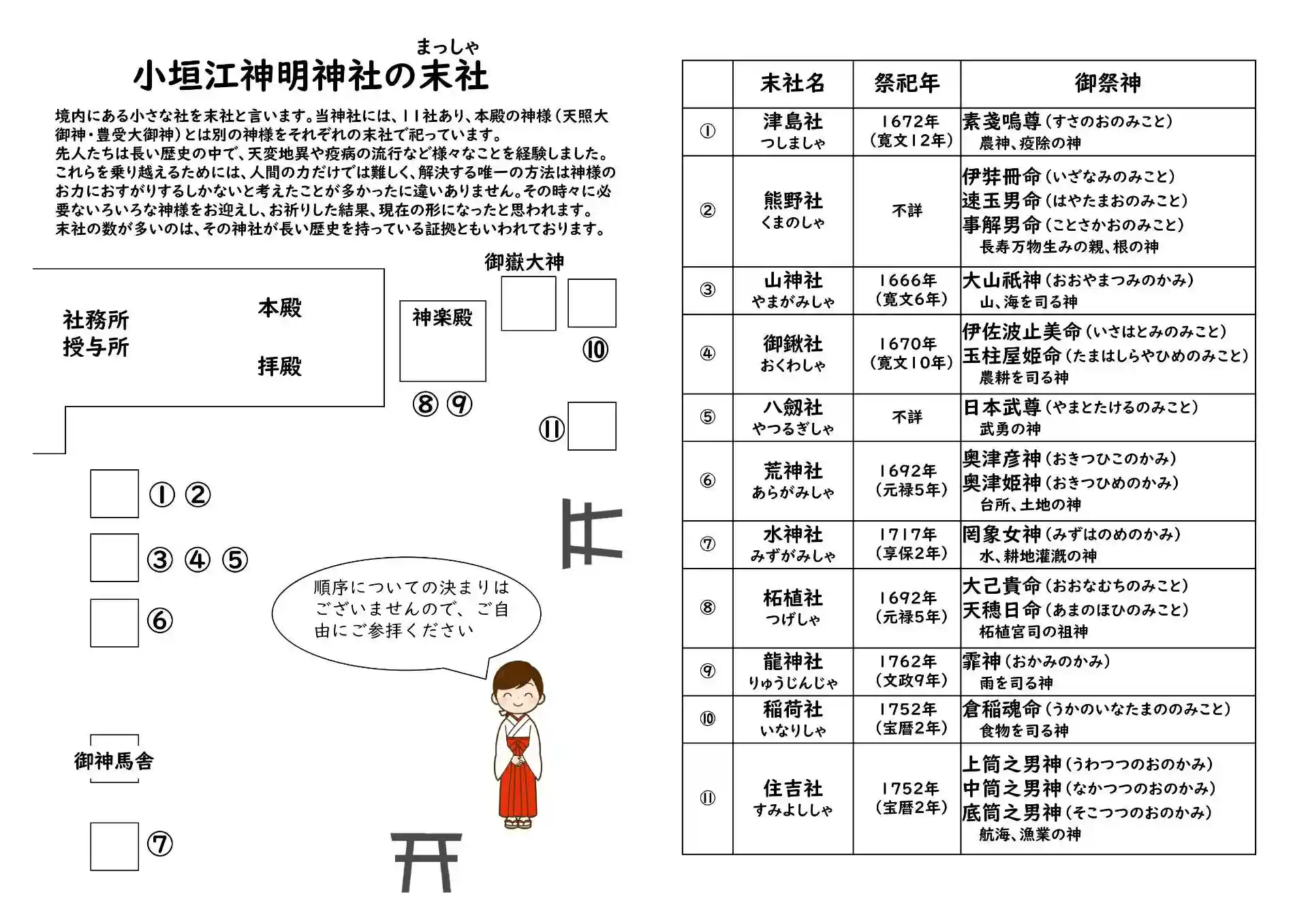 それぞれの末社に関する案内書を授与所にて配布しております。