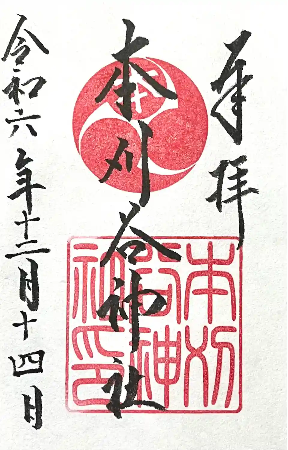 本日最後に本刈谷神社を参拝させていただきました。書置きの御朱印を頂きました。