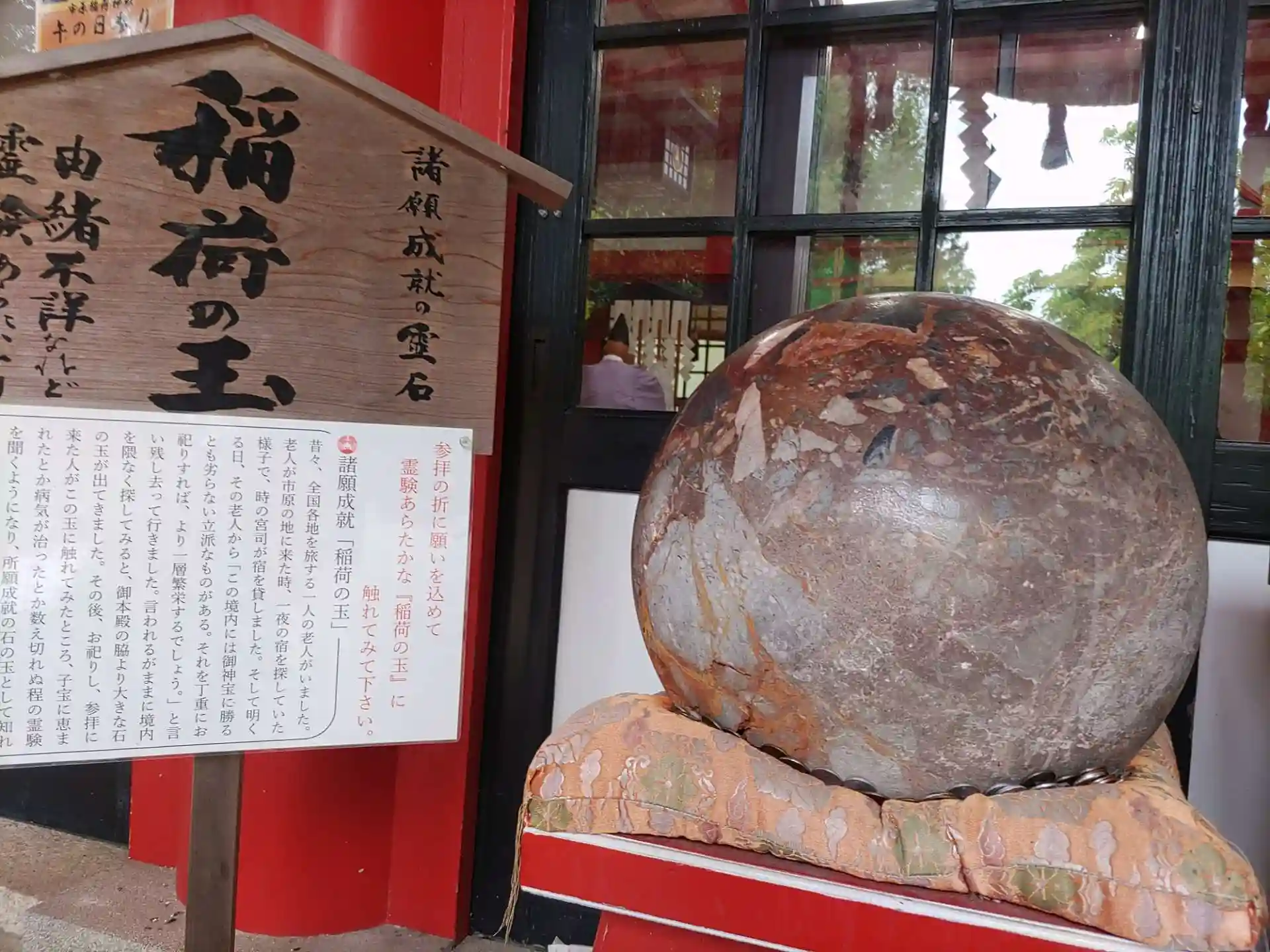 真っ赤な社殿でお参りして、横に「稲荷の玉」なるものが・・・願いをこめながら触れると願いが叶うとと書いてあり、さっそく「元気で日々すごせますように」と触れてみました。