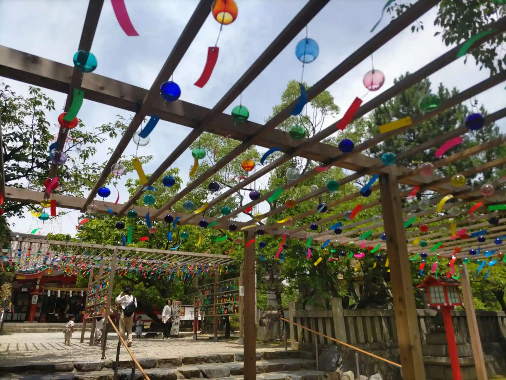 弊社、末社がいくっつもあり、拝殿へと続く参道の風鈴がみごとでした。