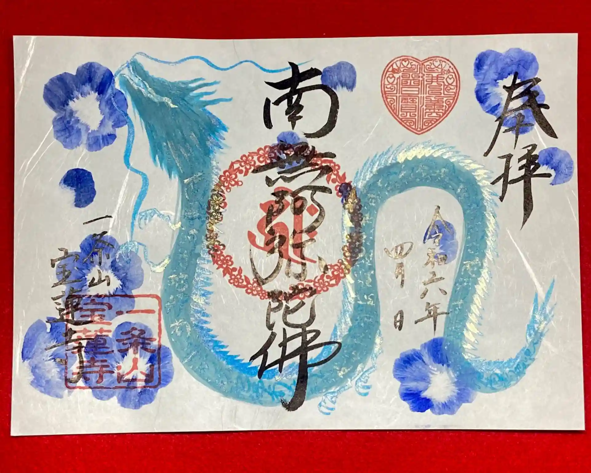 瑠璃唐草と龍の御朱印 春をイメージした瑠璃唐草(ネモフィラ)と瑠璃色の龍です。