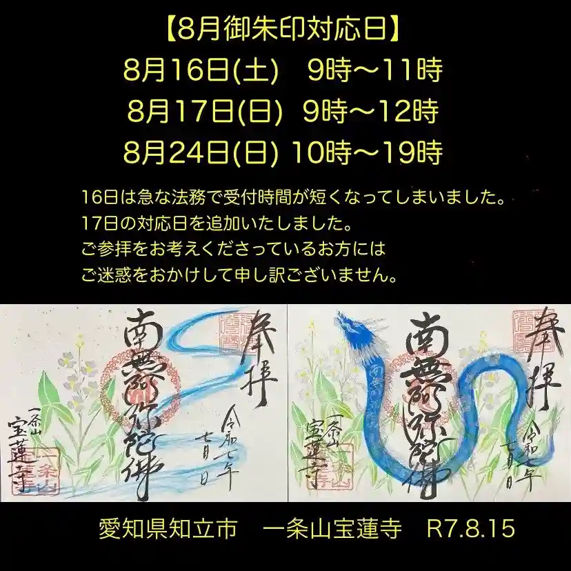 一条山宝蓮寺の限定御朱印|愛知県知立駅