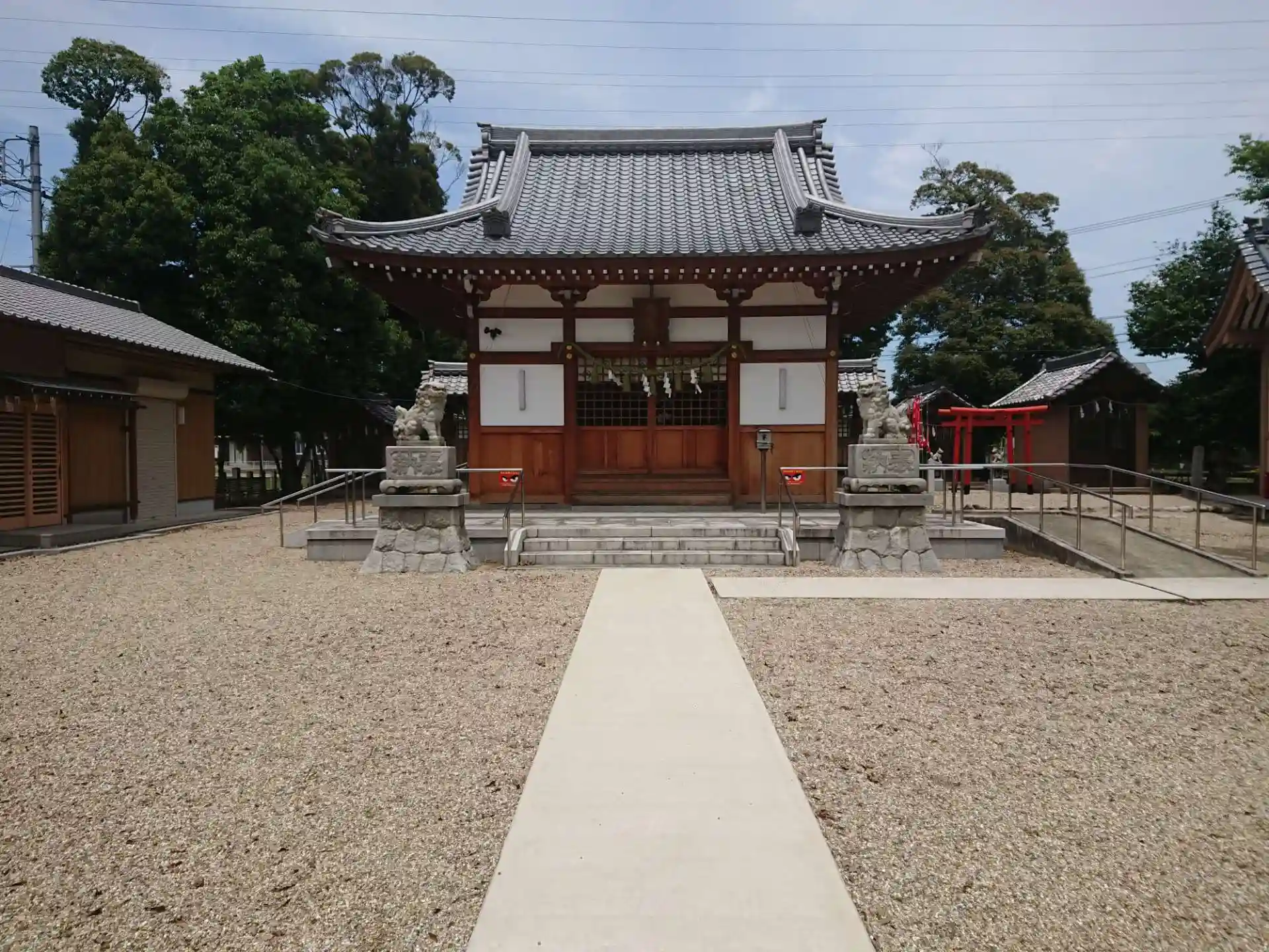 通りから見える赤い鳥居がよく目立ちます。まだ新築してあまり過ぎていないので綺麗です。