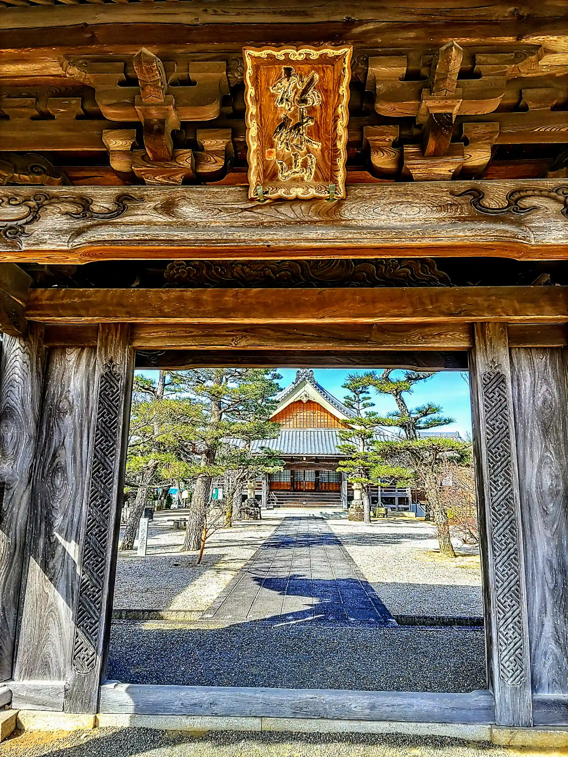 たま~にあるんですよね、参道、本堂を取り巻く木々、本堂、青い空。これらが、がっちりはまって絵になる一枚が撮れることが。