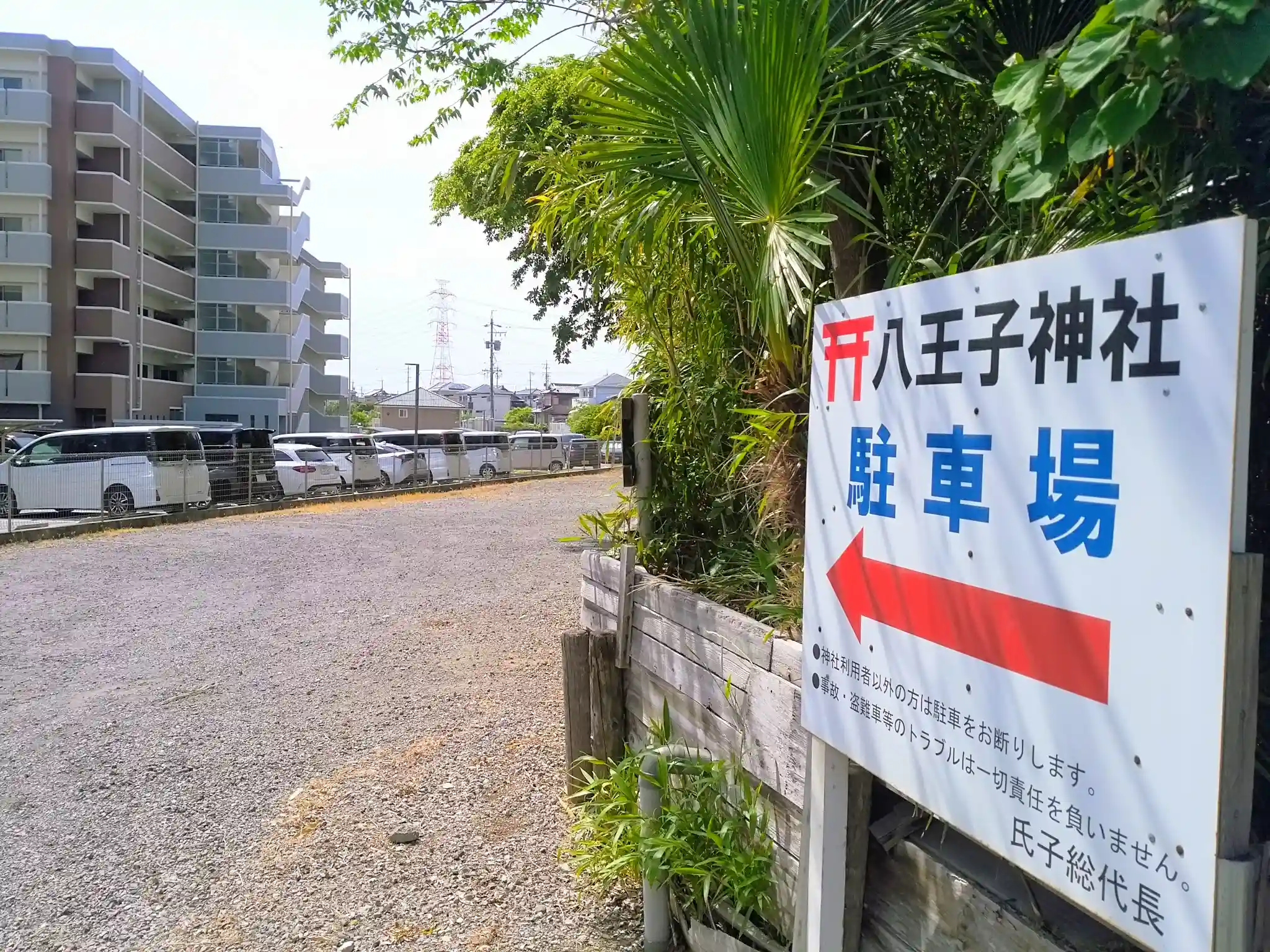 神社駐車場 神社の南側にあります。鳥居は北側です。