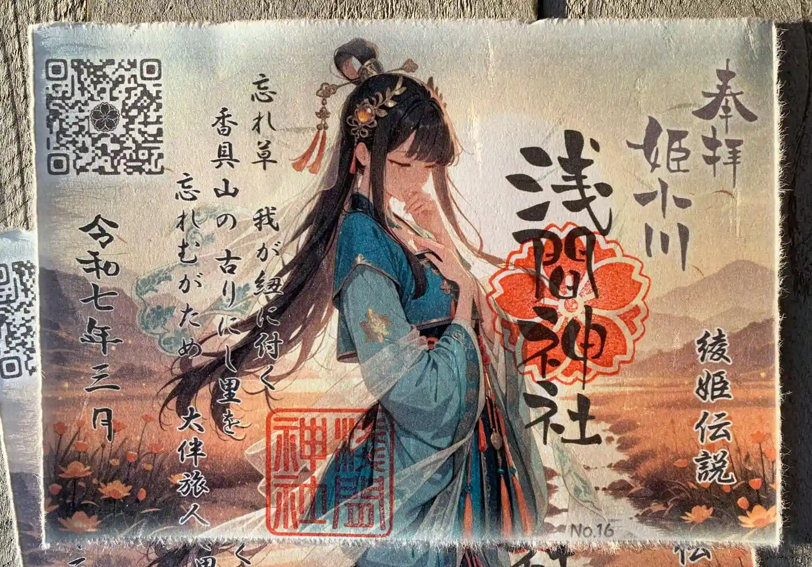 綾姫が姫小川に辿り着いた後の、故郷を偲ぶイメージで作成しました
