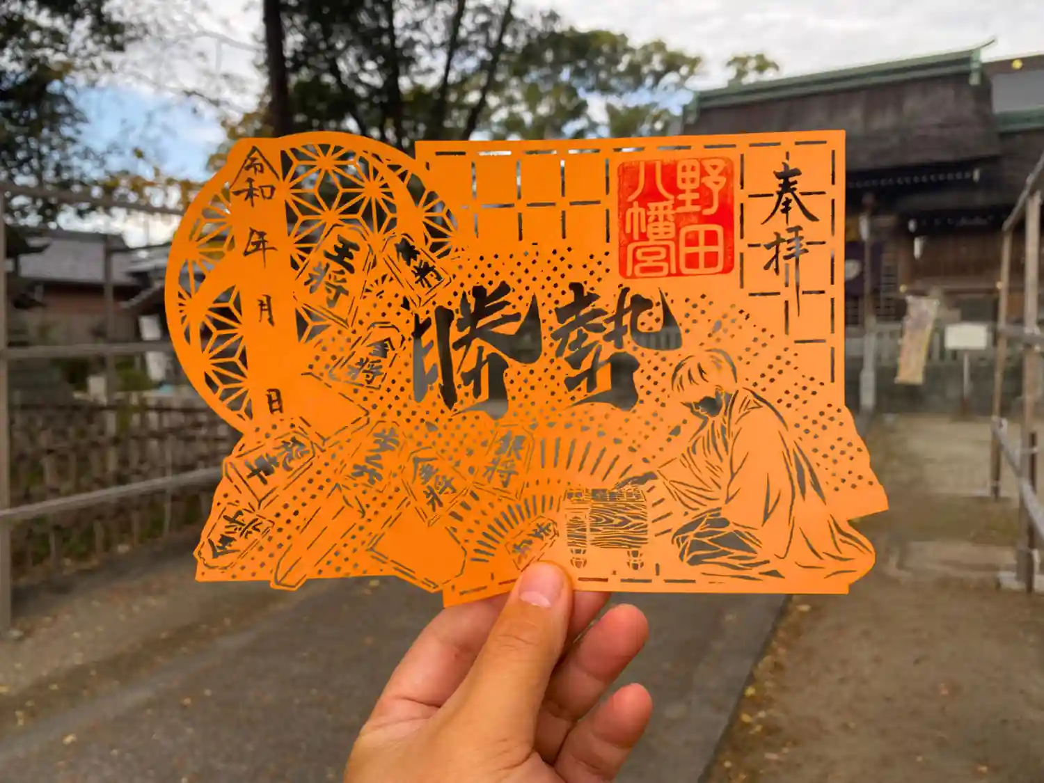 11月限定の切り絵御朱印です。光に透かすと模様の陰影が美しく浮かびます。