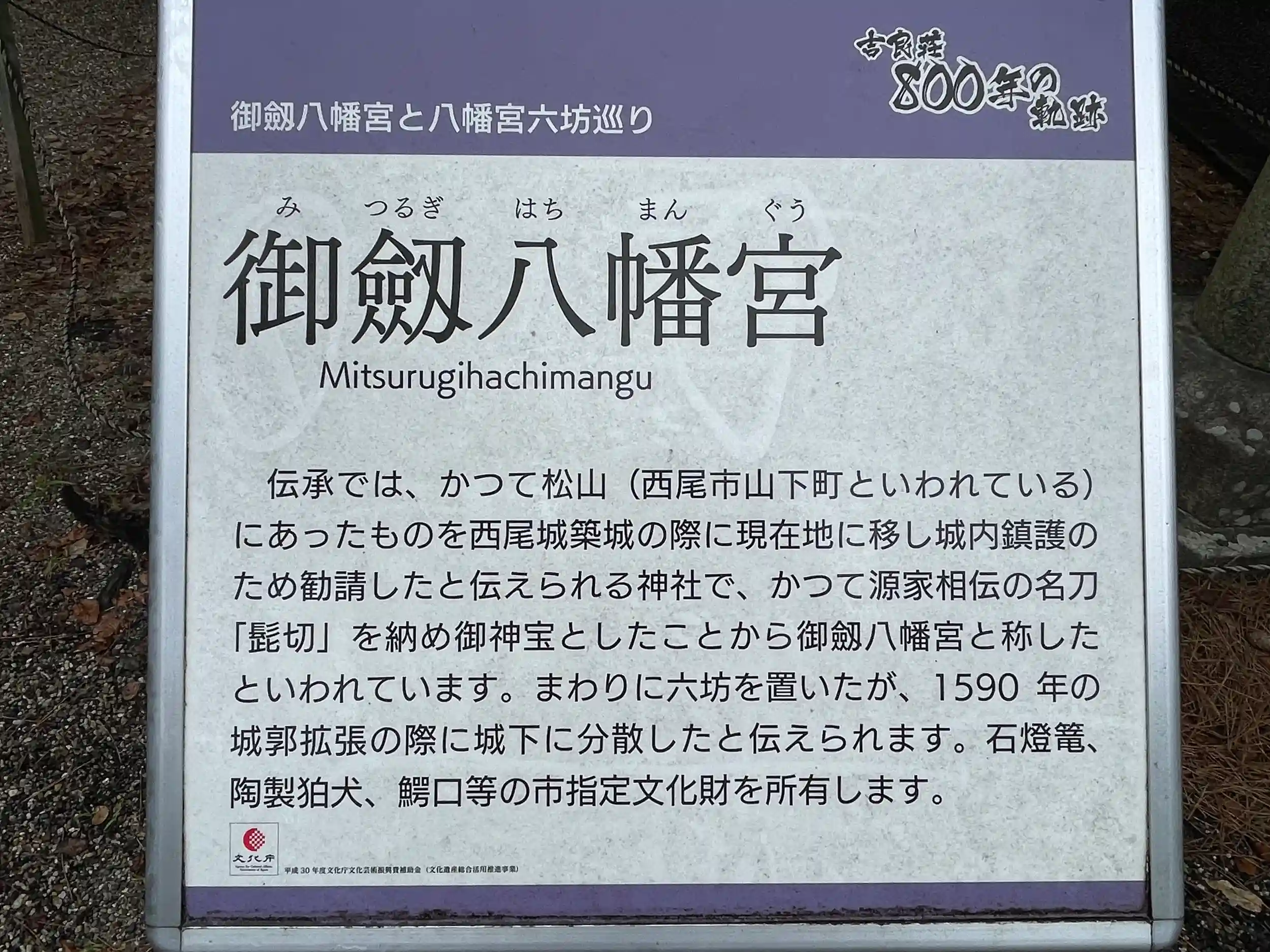 西尾城に鎮座しています、かつて源家相伝の名刀 髭切 を納め御神宝としたことから、御劔八幡宮と称したといわれています