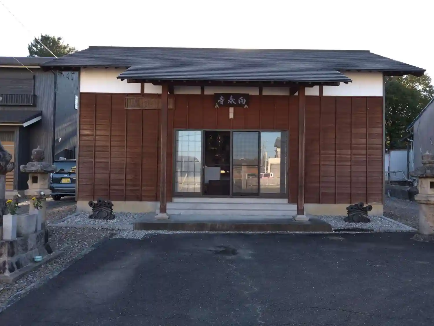 離れて見ると公民館のような本堂があります。