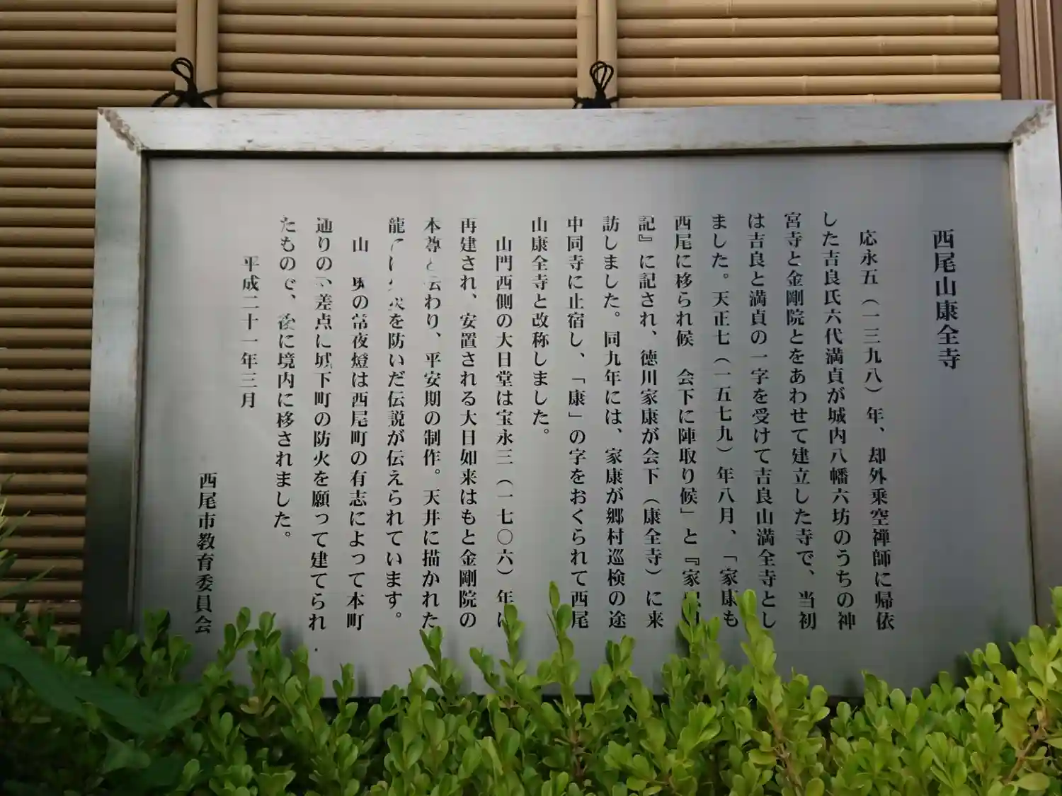 町名は「満全町」です。もともとは、「満全寺」という名前でした。家康さんが「俺の康の字をあげるよ。」…
