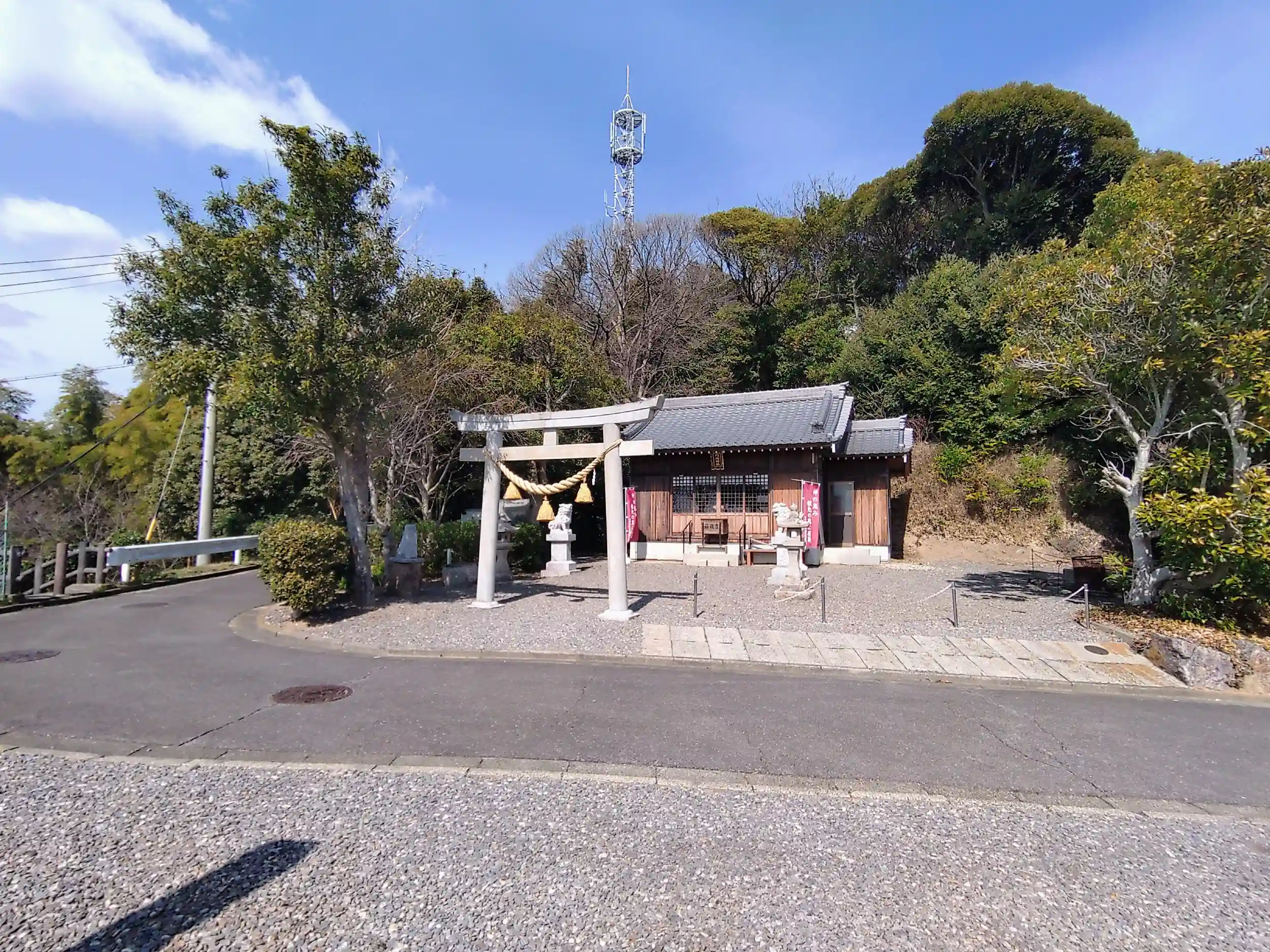 門内(かいと)と読みます。白山系の神社さんになります。もともとは権現山の山頂にあったみたいだけど不便ということで裾野まで降りてきたみたいです。現在地からでも見晴らしはいいです。