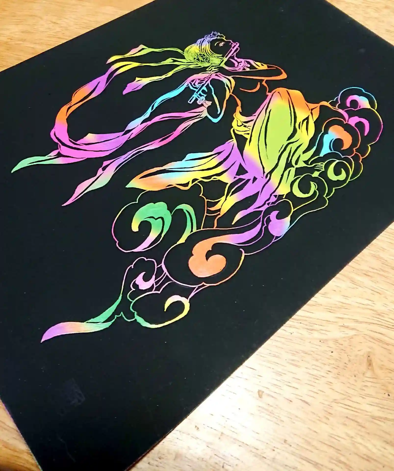 天女さまをスクラッチアートでゆっくり写しました( *´꒳`*)