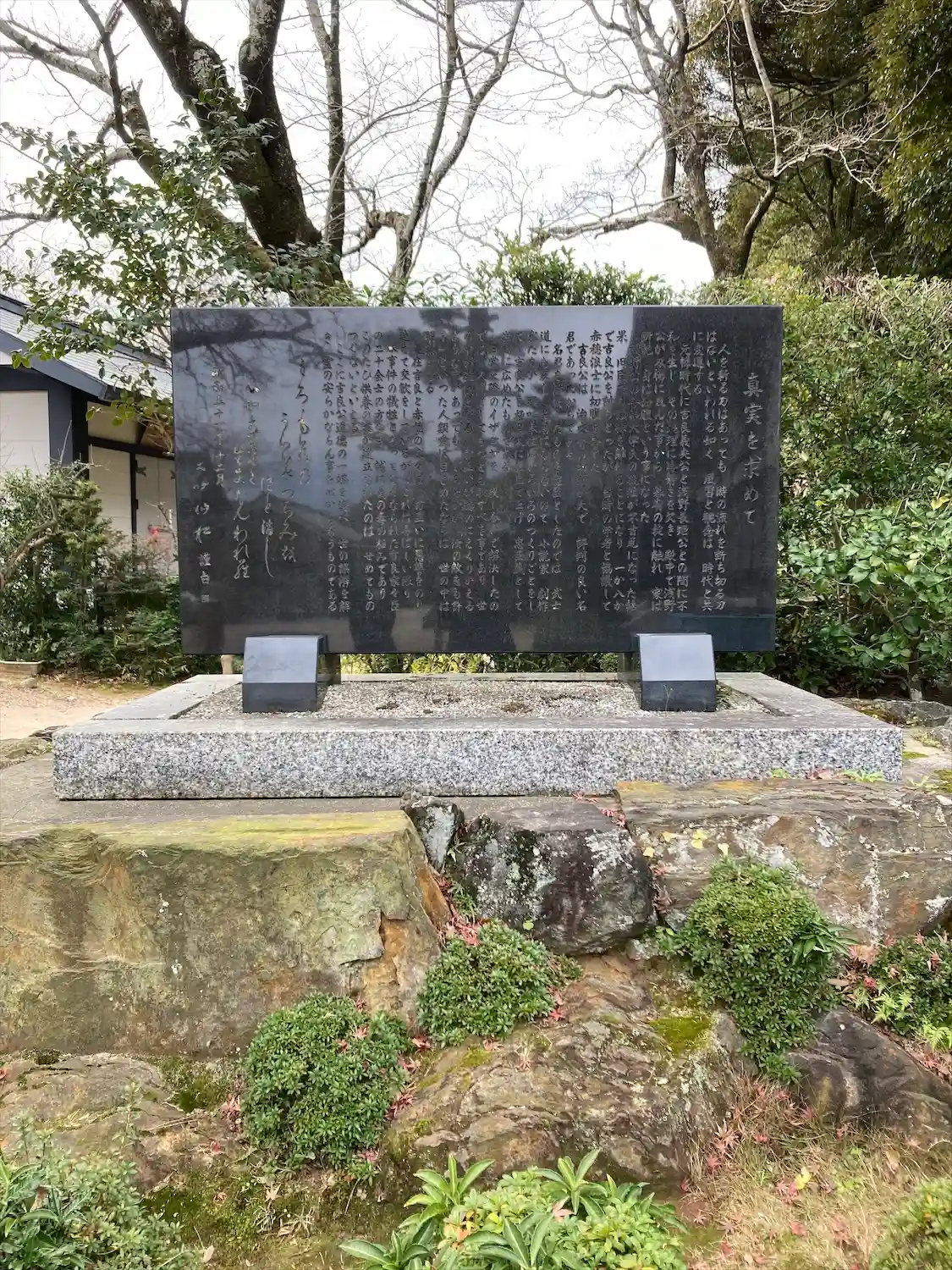 「真実を求めて」の石碑