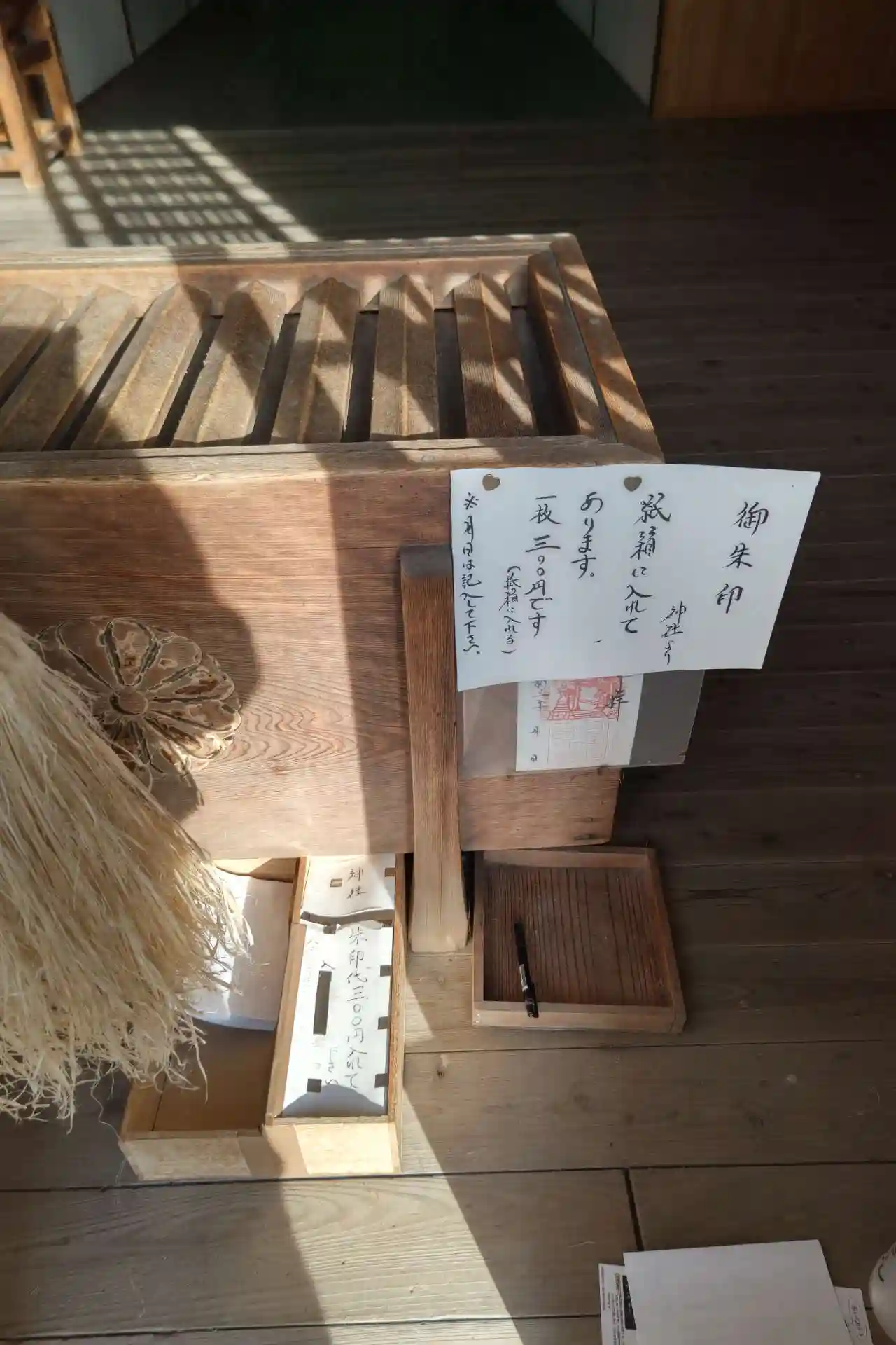 書置きの御朱印がありました。親切に日付を入れるための筆ペンが置いてありました。お金を入れてお参りしました🙏