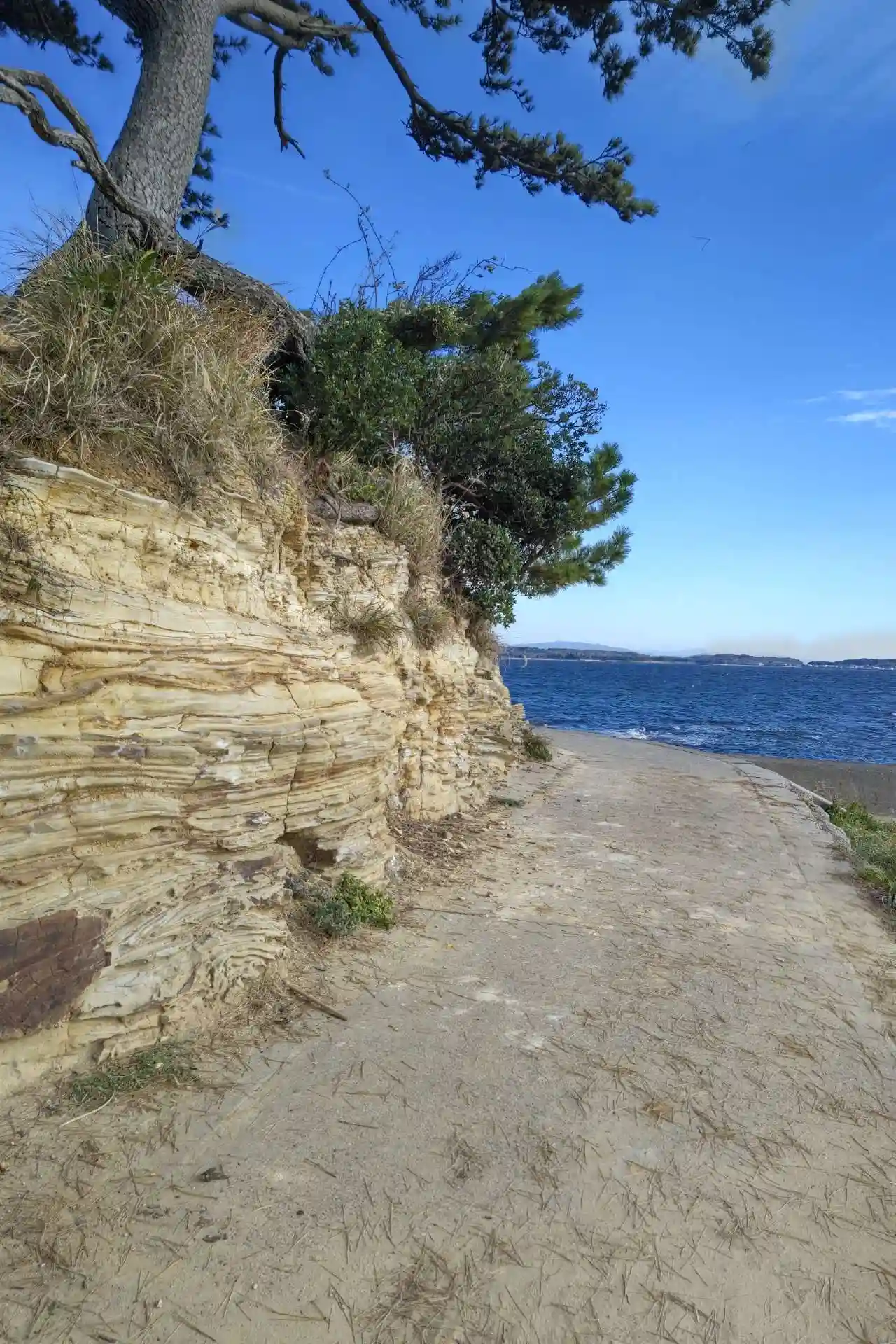 このあと島の最東端に行きました。地層がむき出しの崖がありました。