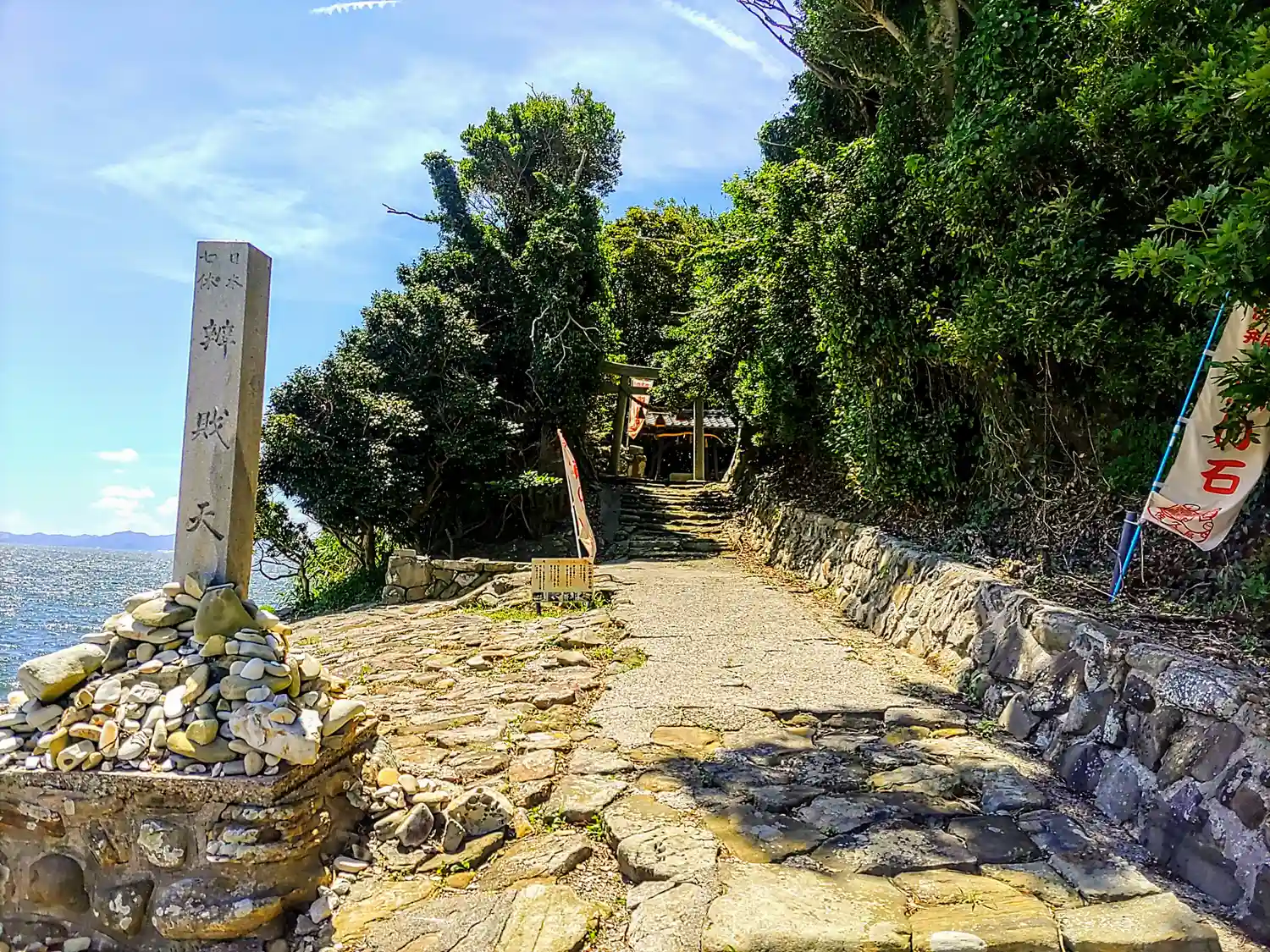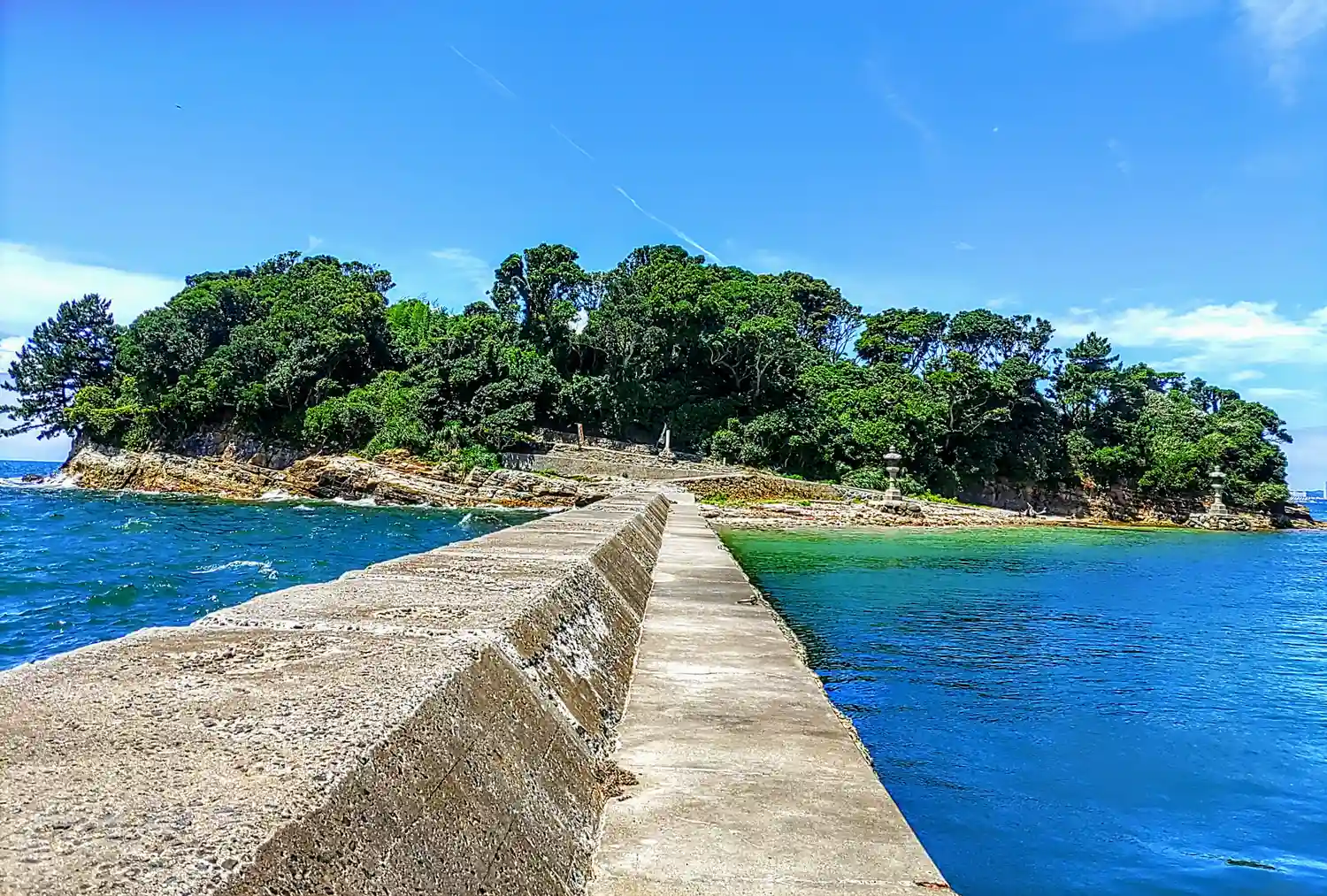 佐久島の筒島にある弁財天。とても綺麗な海。そこに浮かぶ島。自然豊かな神社さんでした。